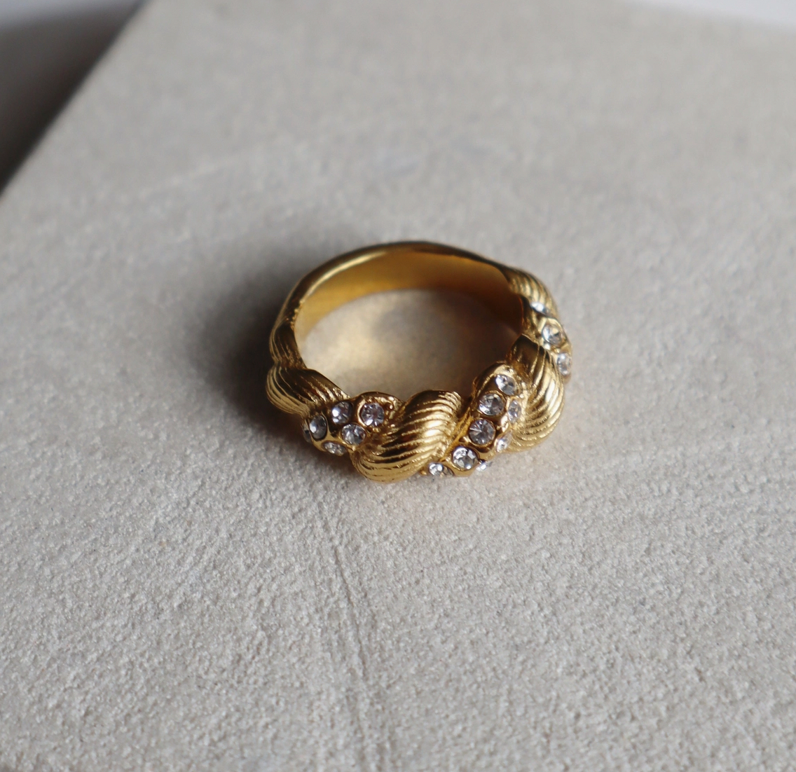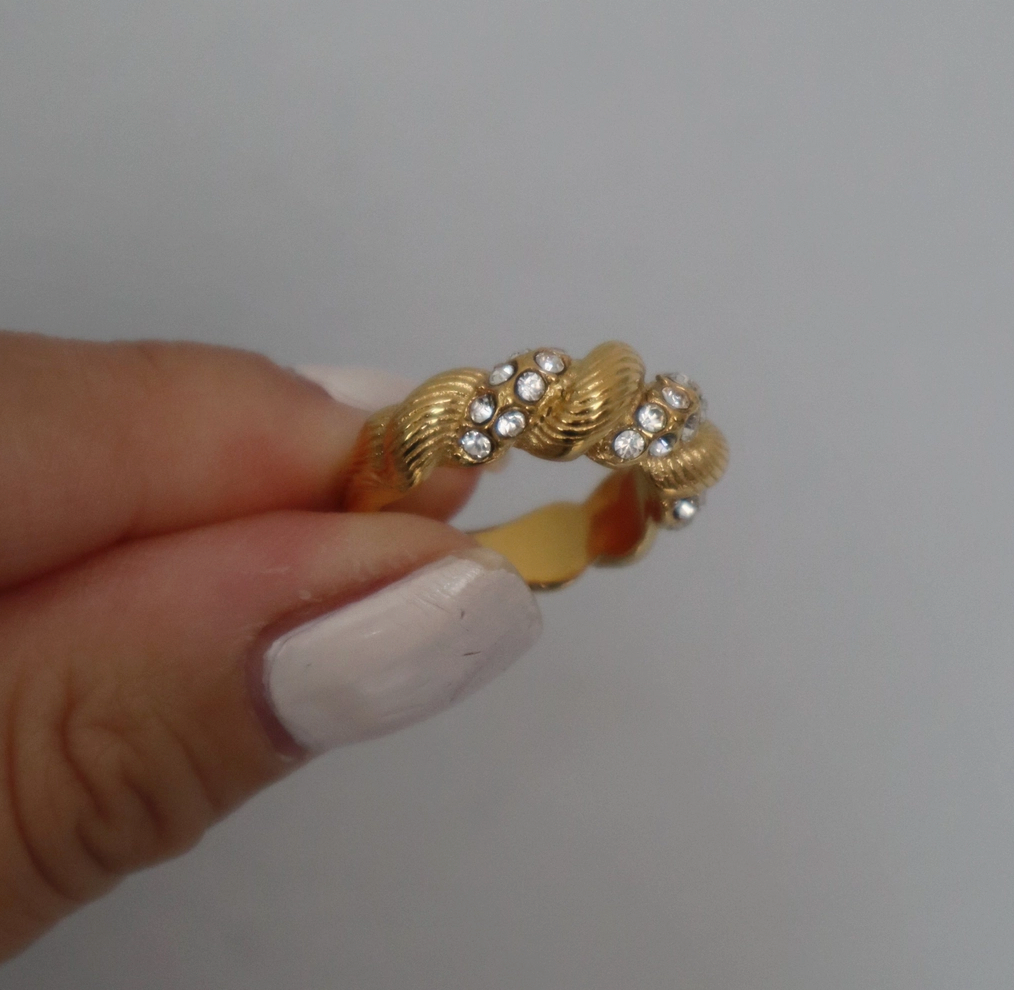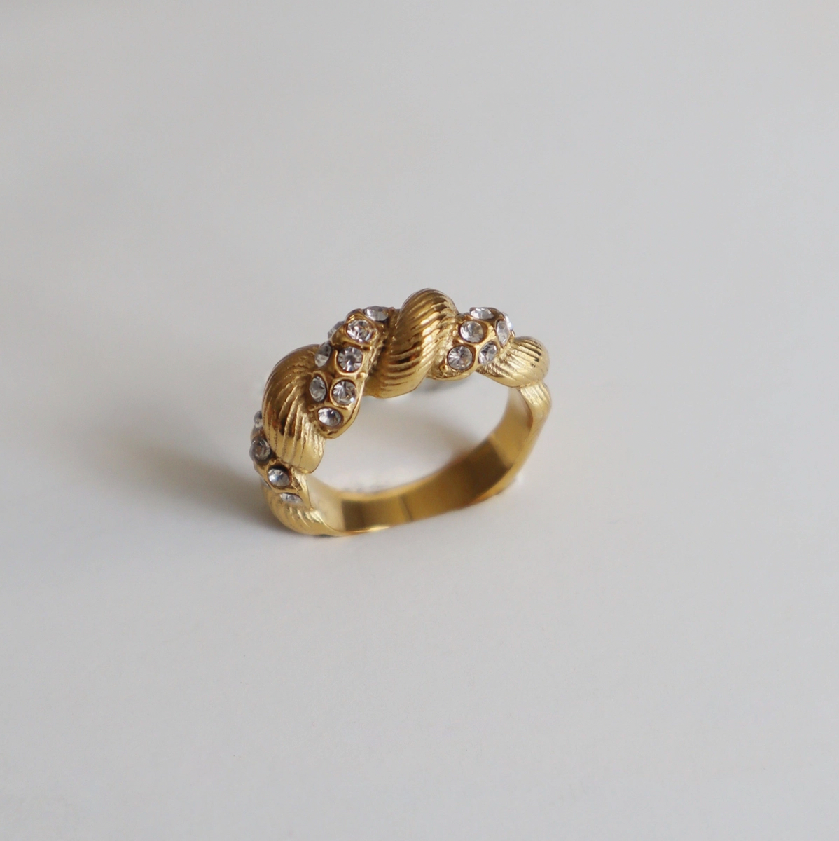 The Ari Ring screams g l a m o r o u s with its twisted design and delicate CZ stones. This ring elevates any ensemble with timeless style and sophistication.