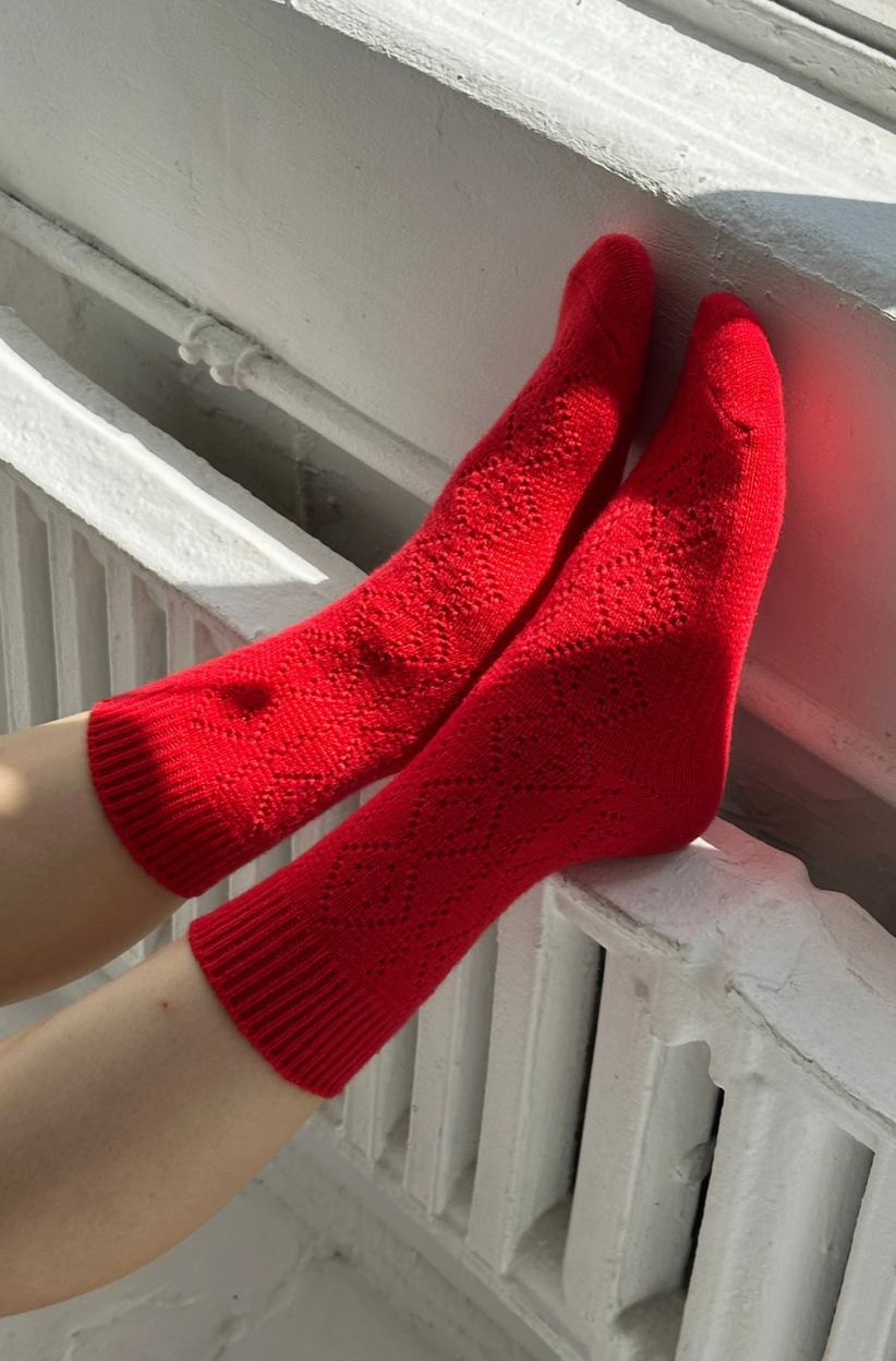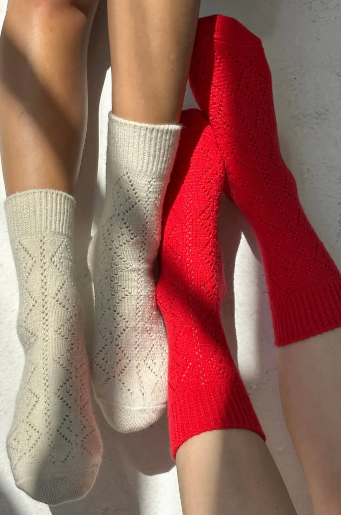 Why We Made This? If Classic Cashmere had a little sister, this would be it. Cozy, soft, and full of charm. A crew-length silhouette with ribbed detail at the top and a delicate pointelle knit that adds just the right amount of sweetness to any look.