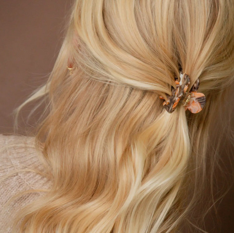 This unique & stunning claw clip is the cutest size, and is the absolute perfect color combo for this time of year! The best way to elevate your updo for the day. This is a mini size claw clip measuring at 1.5 inches.