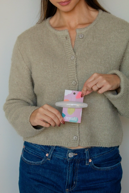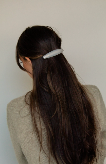 This barrette is by far the easiest, cutest, and simplest way to style your hair. It's an adorable long oval bar shape, made out of a high-quality acetate material, attached to a French barrette. It comes in 2 colors-- white and green. These will be your go-to accessory all year!