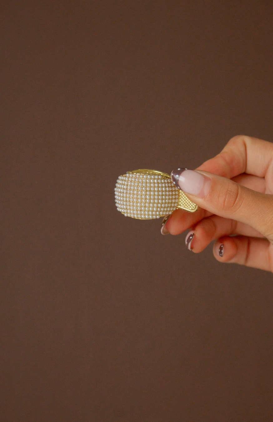 This is the cutest & most perfect ponytail claw clip! I love the cute pearl studded detail, and it measures 1.25 inches wide. I absolutely LOVE this unique style of clip for covering up your ponytail holder & leveling up your ponytail game!