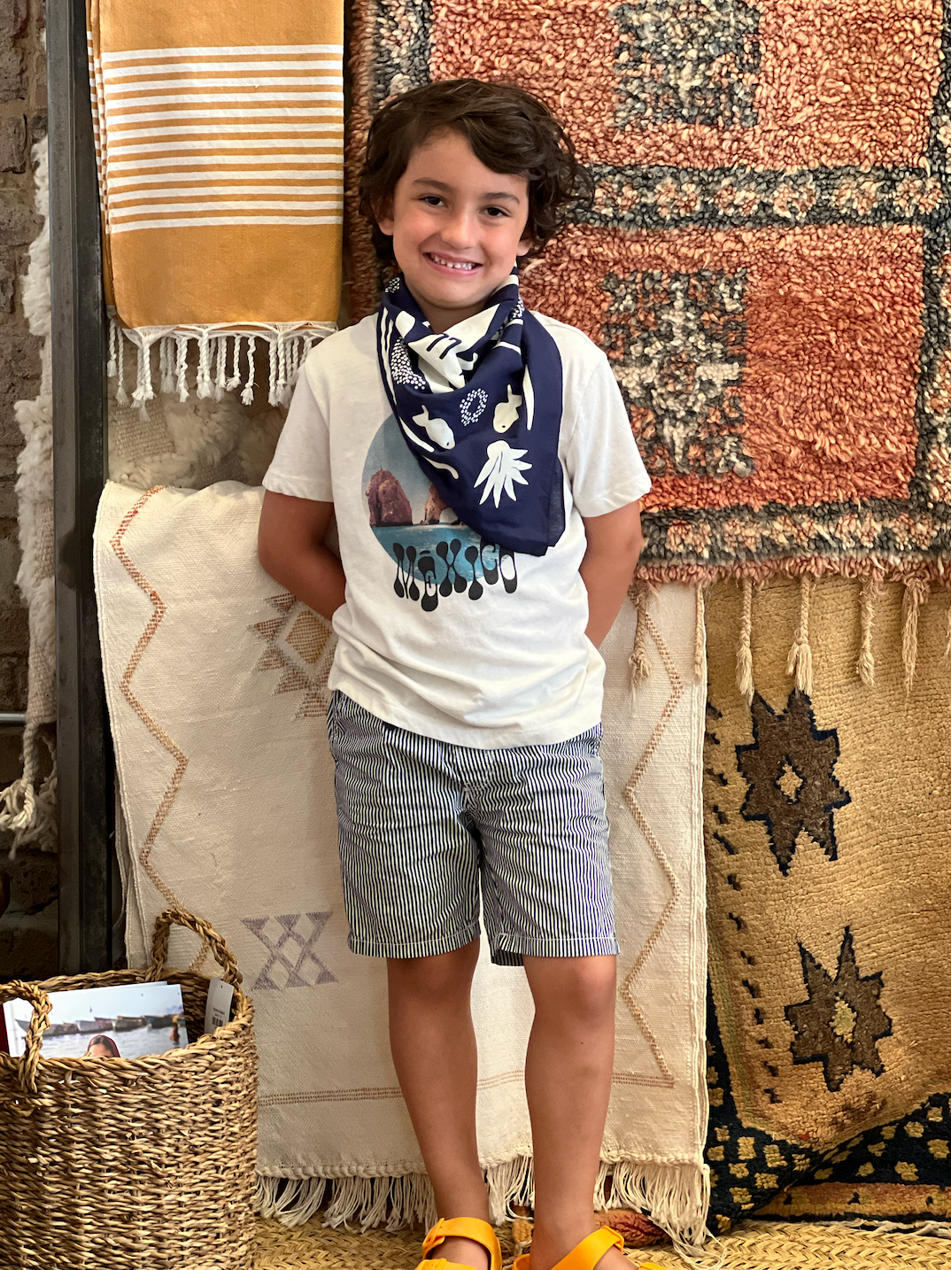 A super soft bandana designed with pops in mind. I mean who doesn't love beachy vibes with a nod to one of our favorite Dallas Mavericks. Luka Doncic, number 77.