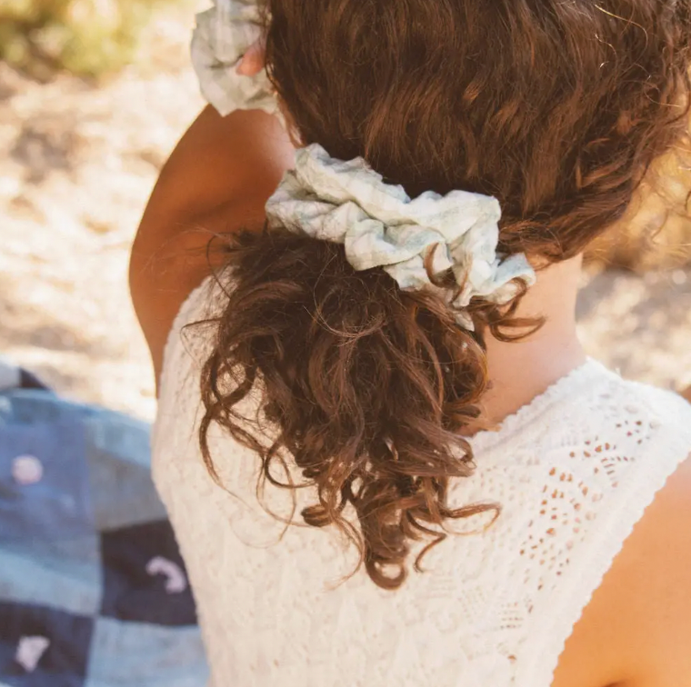 This jumbo scrunchie is the perfect back to school and fall season accessory. It is made in a nice lightly textured fabric, and is the cutest green and white gingham. It'll be the perfect addition to your hairstyles this fall.
