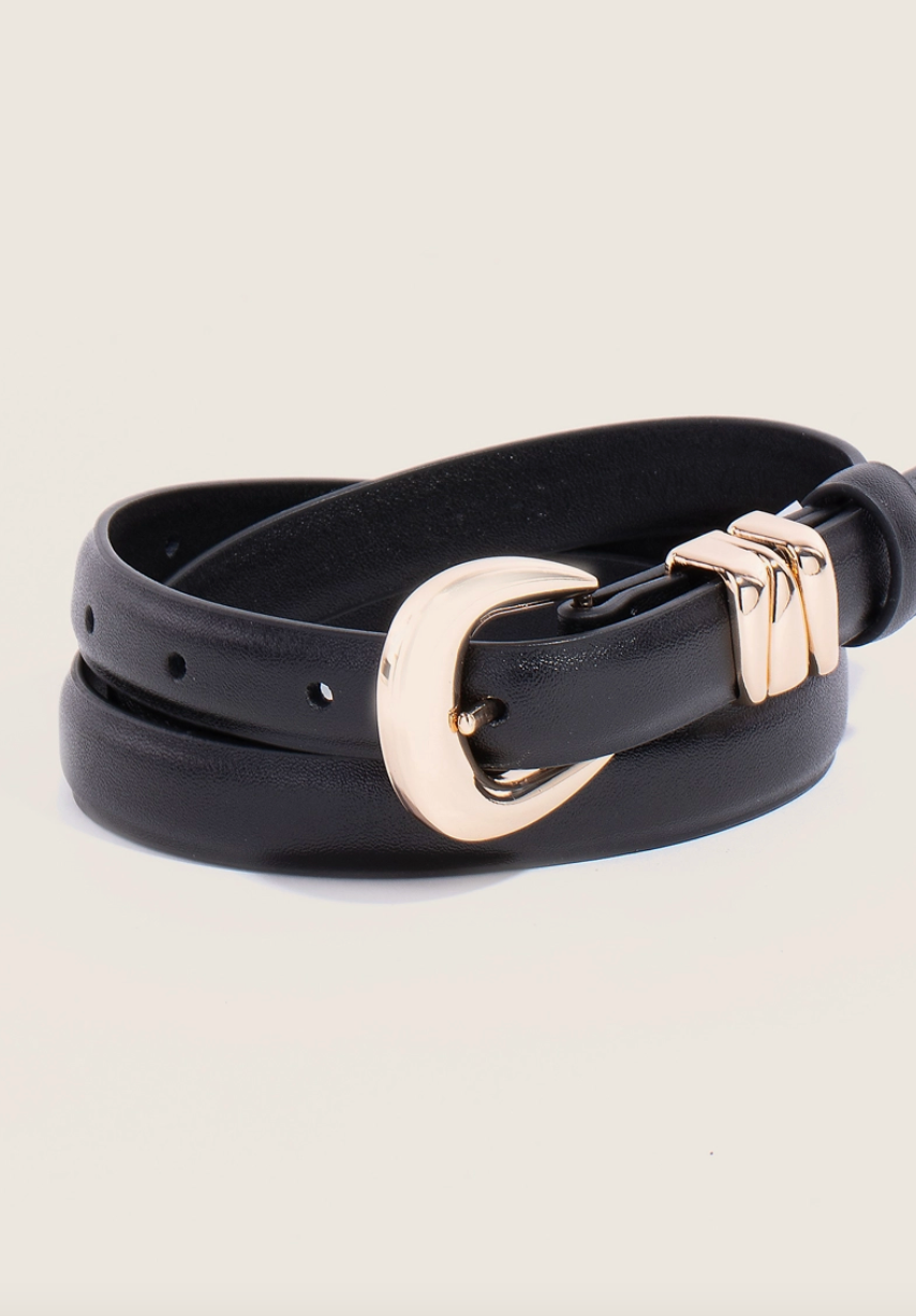 Stay on-trend and ahead of the fashion curve, this leather belt reveals an intricate thin design. Add a touch of glamour to your wardrobe with this versatile leather belt, perfect for enhancing the elegance of any look.