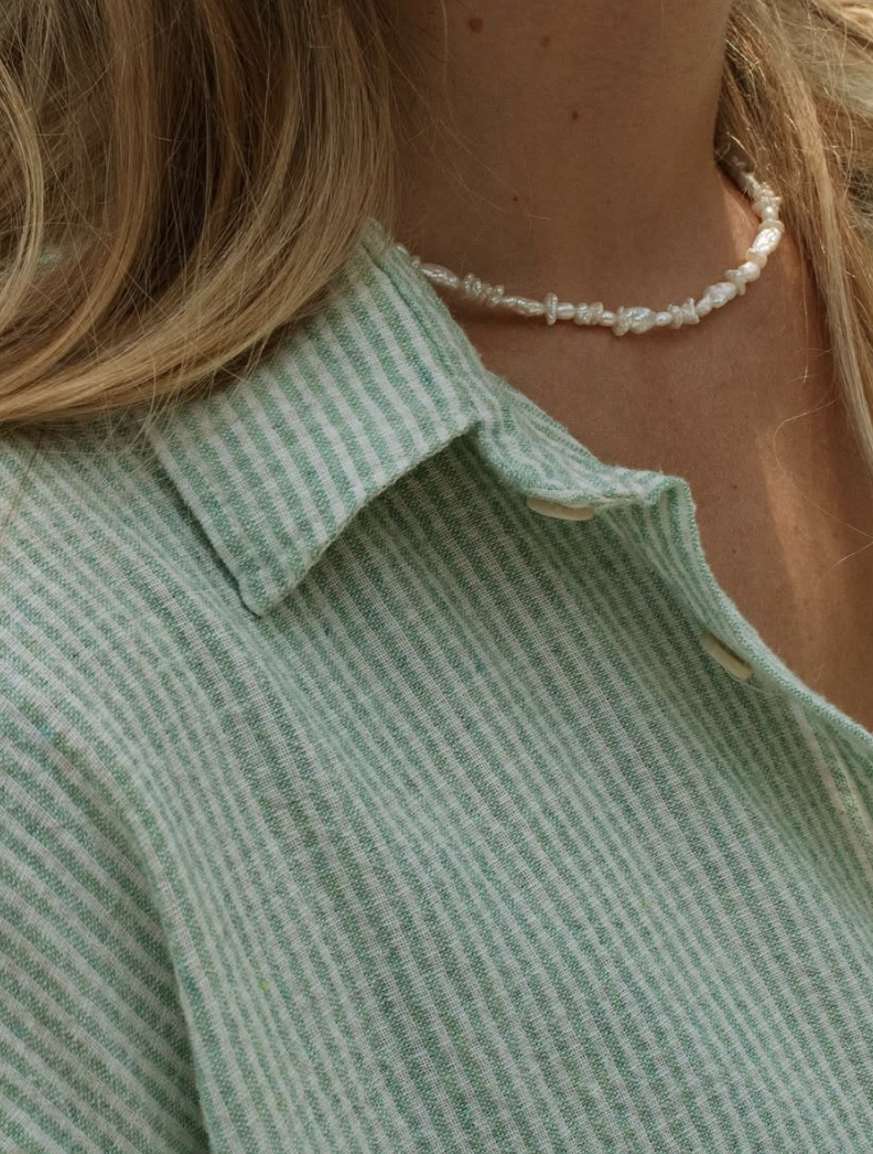 The Perle Necklace is a beautifully handmade pearl necklace that we can't keep wearing. Wear this piece alone or layer. You can't go wrong either way. We love the feminine look of these pearls. Wear all season long!