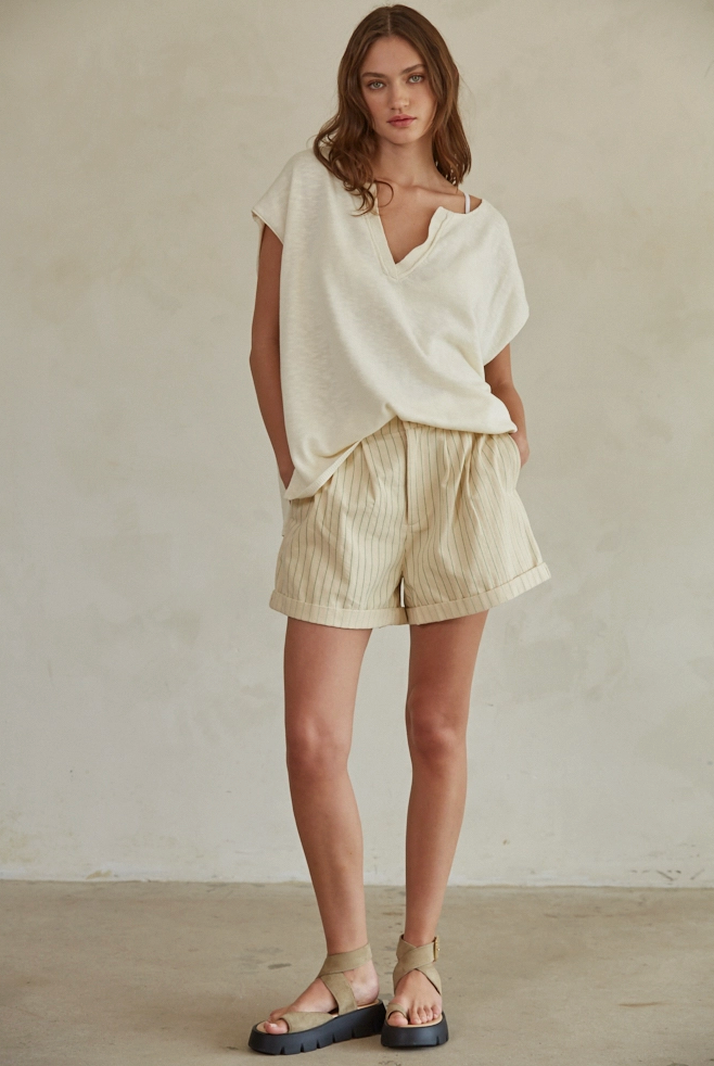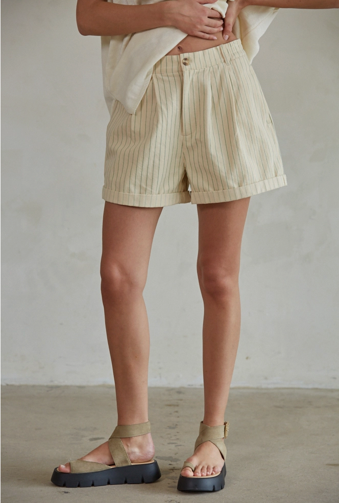 Woven rayon green-striped wide leg shorts with pockets. These shorts look great on everyone and can be easily styled with a tee and slides or dressed up!