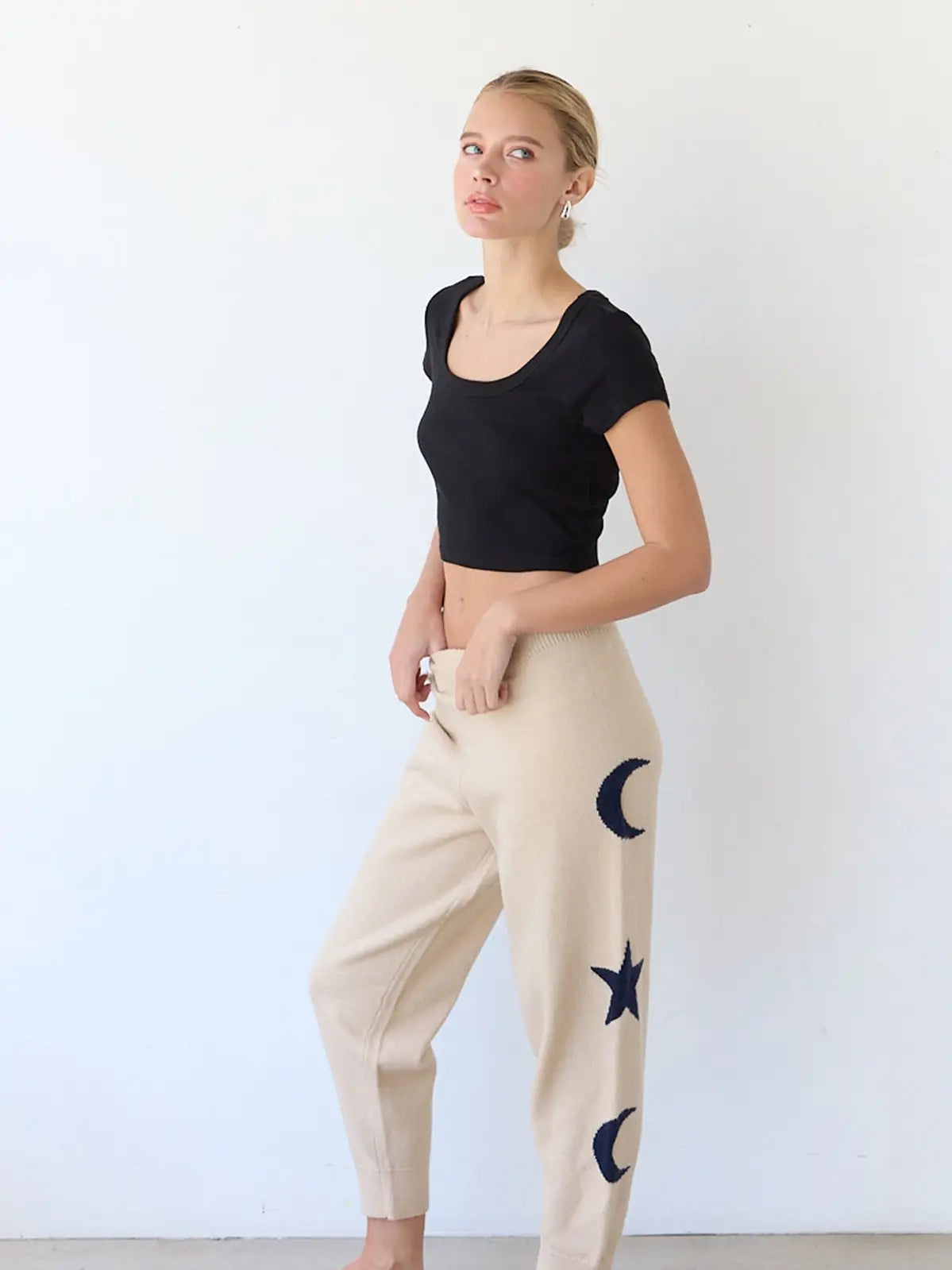 The Starry Nights joggers are a great staple to mix and match with basics or graphics. With bold star and moon prints, it makes a fun pop to any outfit. Keep it on theme with the matching Starry Nights Zip Cardigan (sold separately).