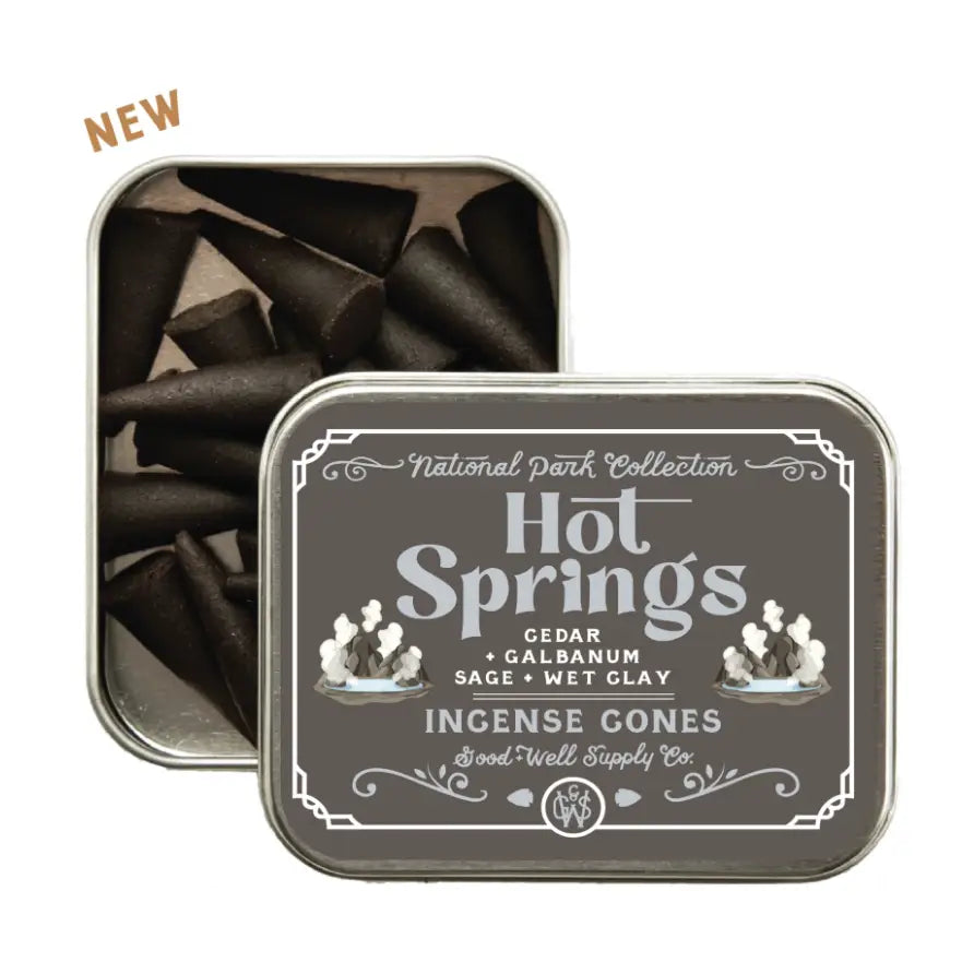 Our incense cones are hand-dipped and are housed in a sturdy aluminum tin; the lid can be used as a burning surface. Each cone will burn for 20-30 minutes with a scent longevity of 2-3 hours. 25 count.