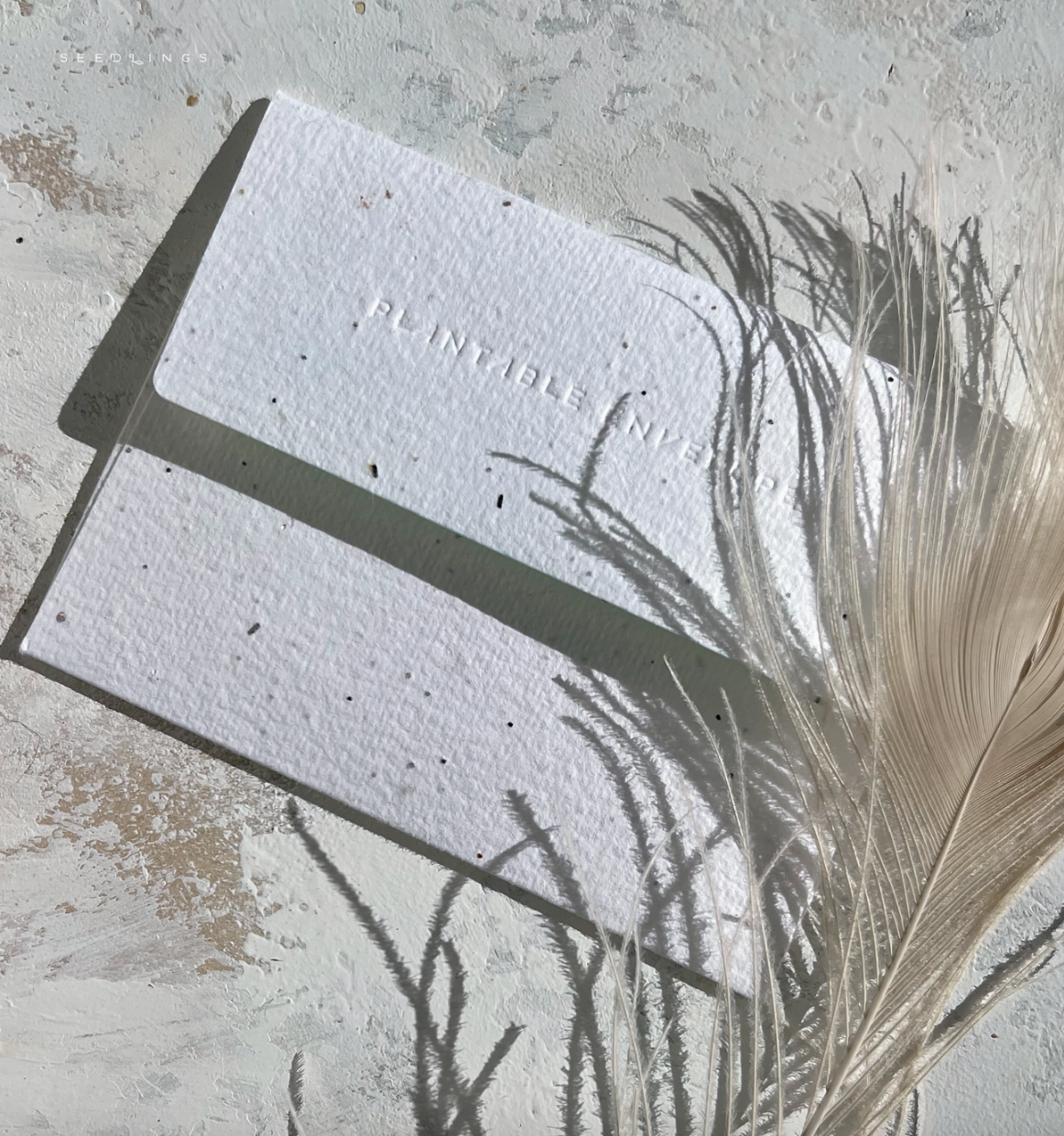 All Seedlings greeting cards have a PLANTABLE seed paper envelope which is embedded with non-invasive wildflower seeds.