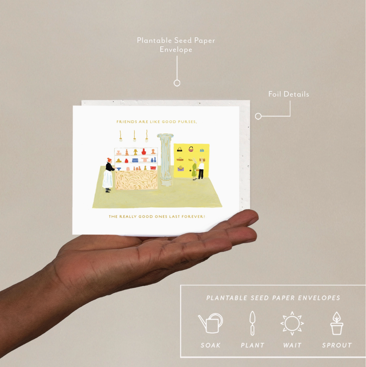 Blank inside, our cards are printed on premium paper and are all accented with foil details. Card size: 4.25" x 5.5" Env: 4.3125" x 5.75" (A2) All Seedlings cards are made in the U.S.A.