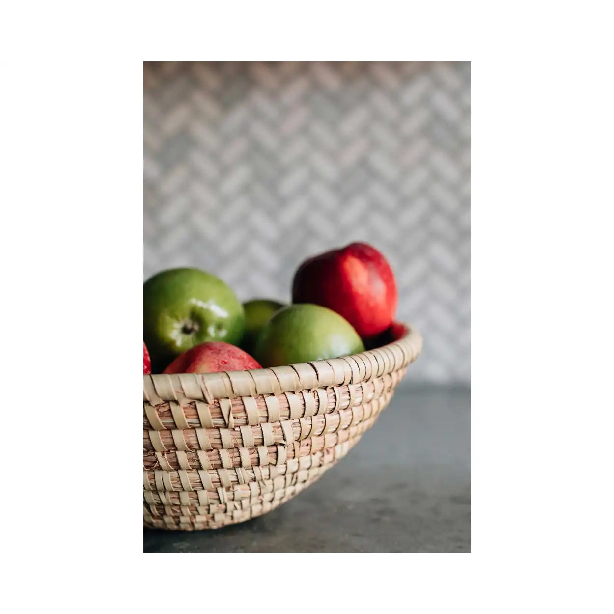 Sturdy coiled bowl in natural kaisa grass is hand-woven in Bangladesh.