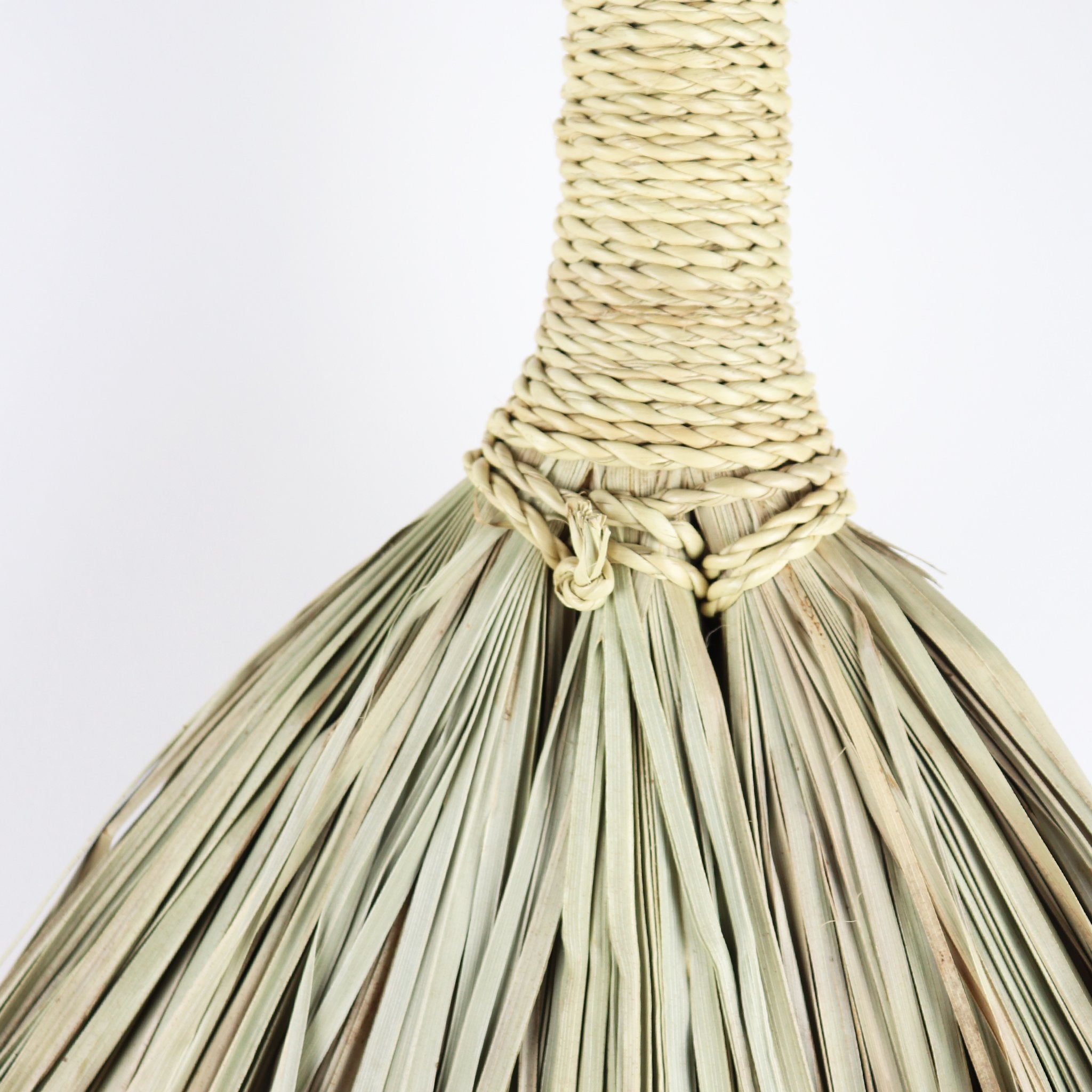 A traditional touch of texture, our Straw Broom stands out in any space. Handwoven from sustainable palm leaves, this piece highlights the simple elegance of traditional Moroccan straw brooms.