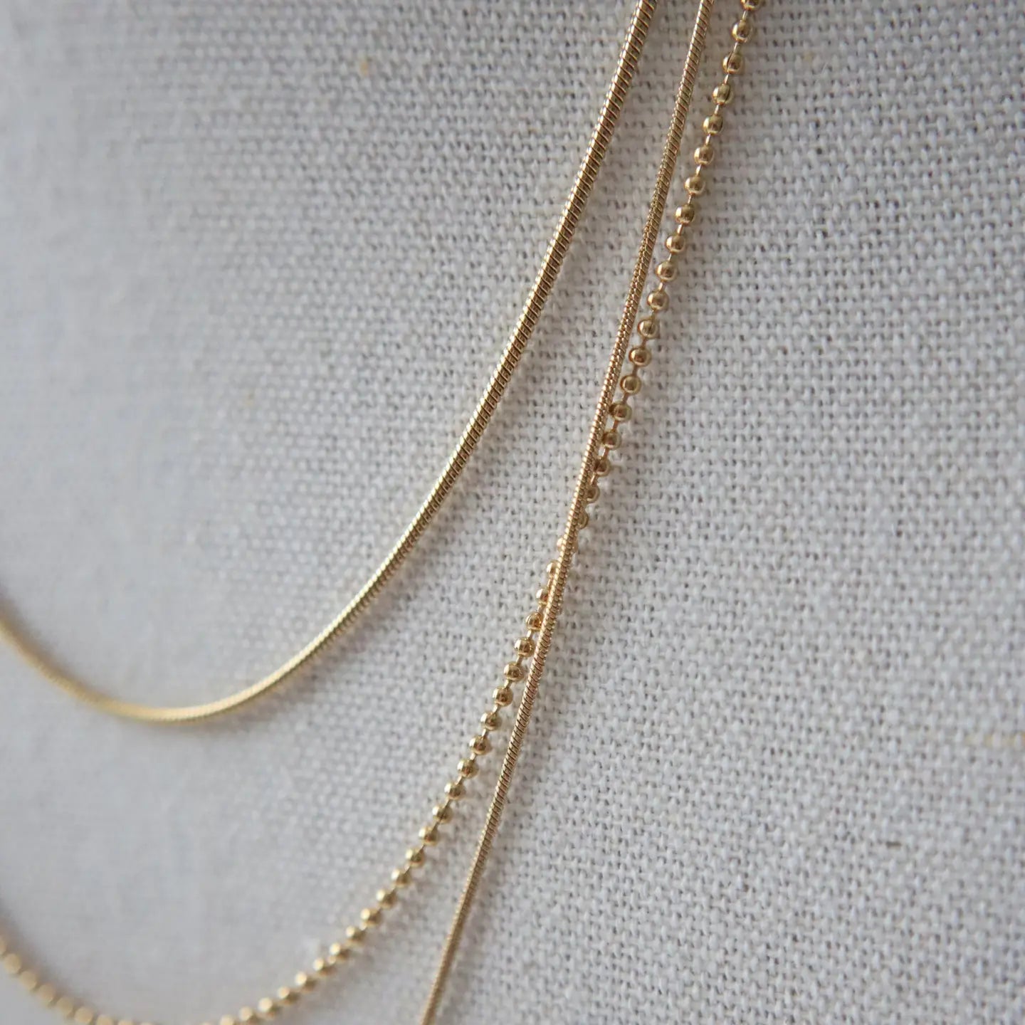 Delicately layered for effortless style, the Trinity Necklace features three dainty chains with a single bezel-set CZ stone as the centerpiece. Lightweight and versatile, it’s perfect for adding a touch of elegance to any outfit.