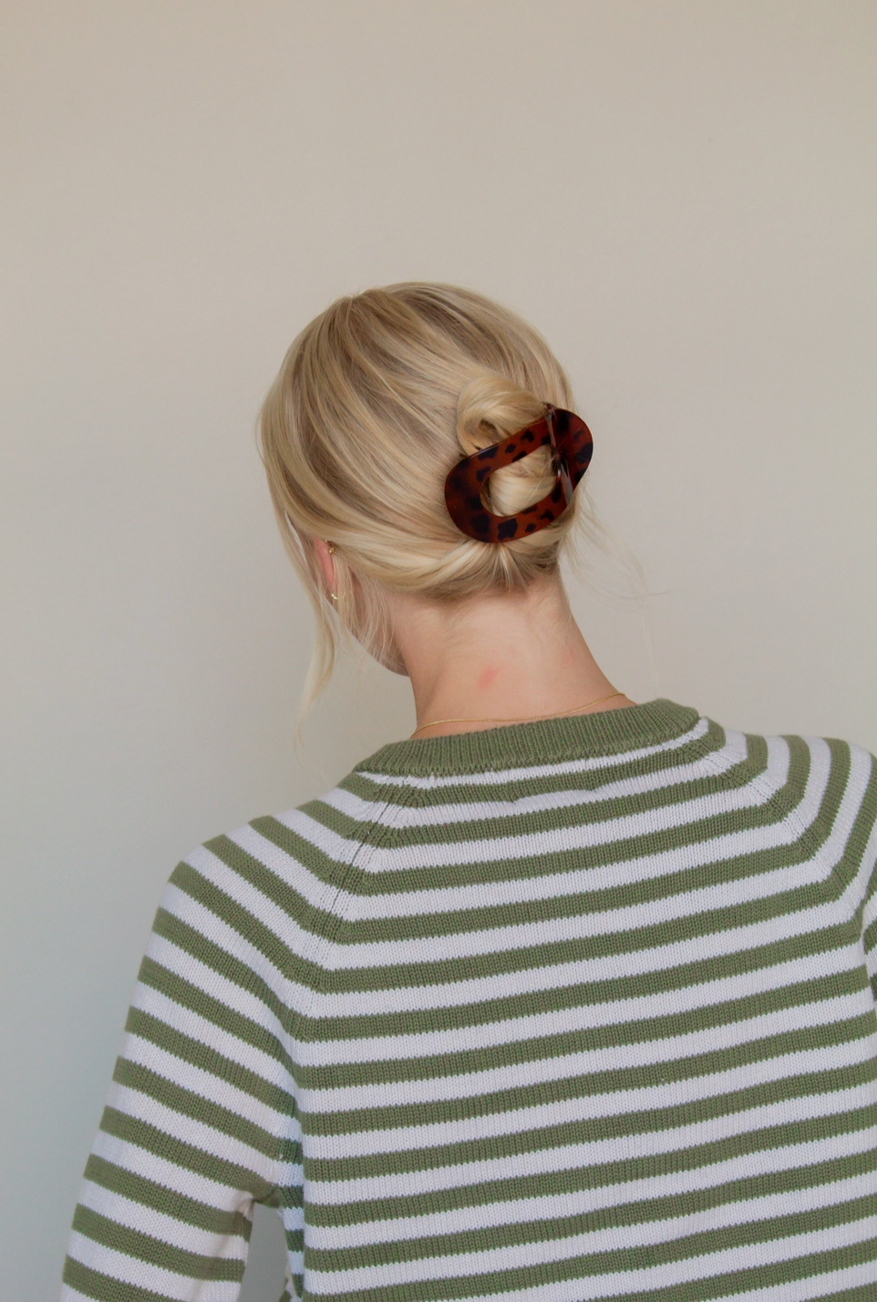 These round cutout, flat claw clips are so cute and functional! Their shape makes them so comfortable during any activity. How often can you find an accessory that is unique and cute but also, so incredibly practical? Wear it every day around the house, during your workouts, to work, or for your next girls night, it'll always match the vibe. It is a large 3.75 inch flat claw clip.
