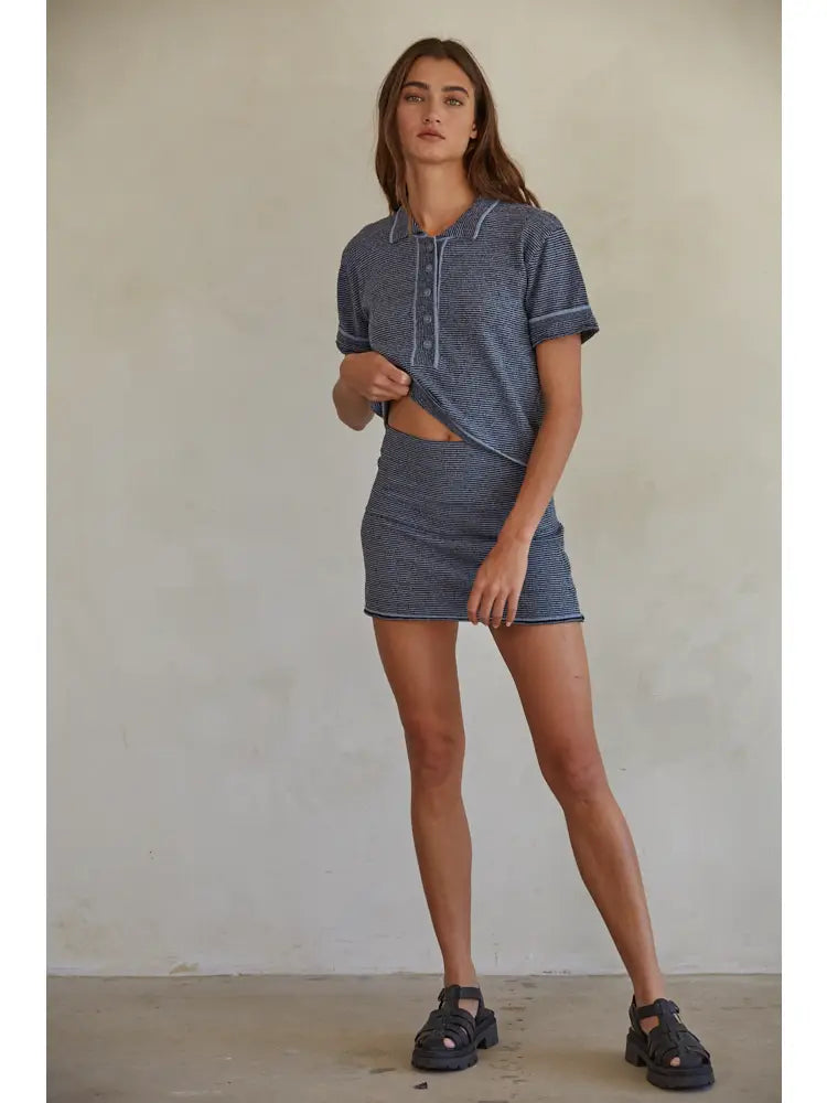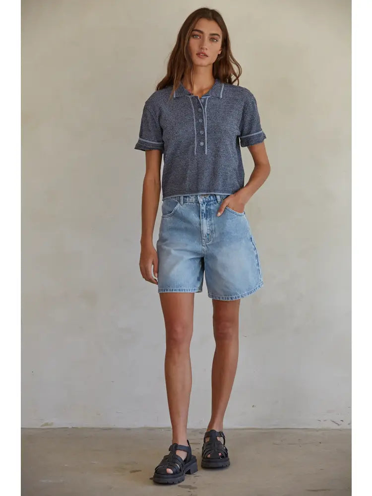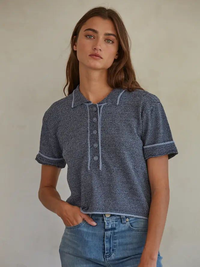 This knit sweater top features a half button collar neckline & rolled sleeve. It is perfect to dress up a pair of casual jeans.