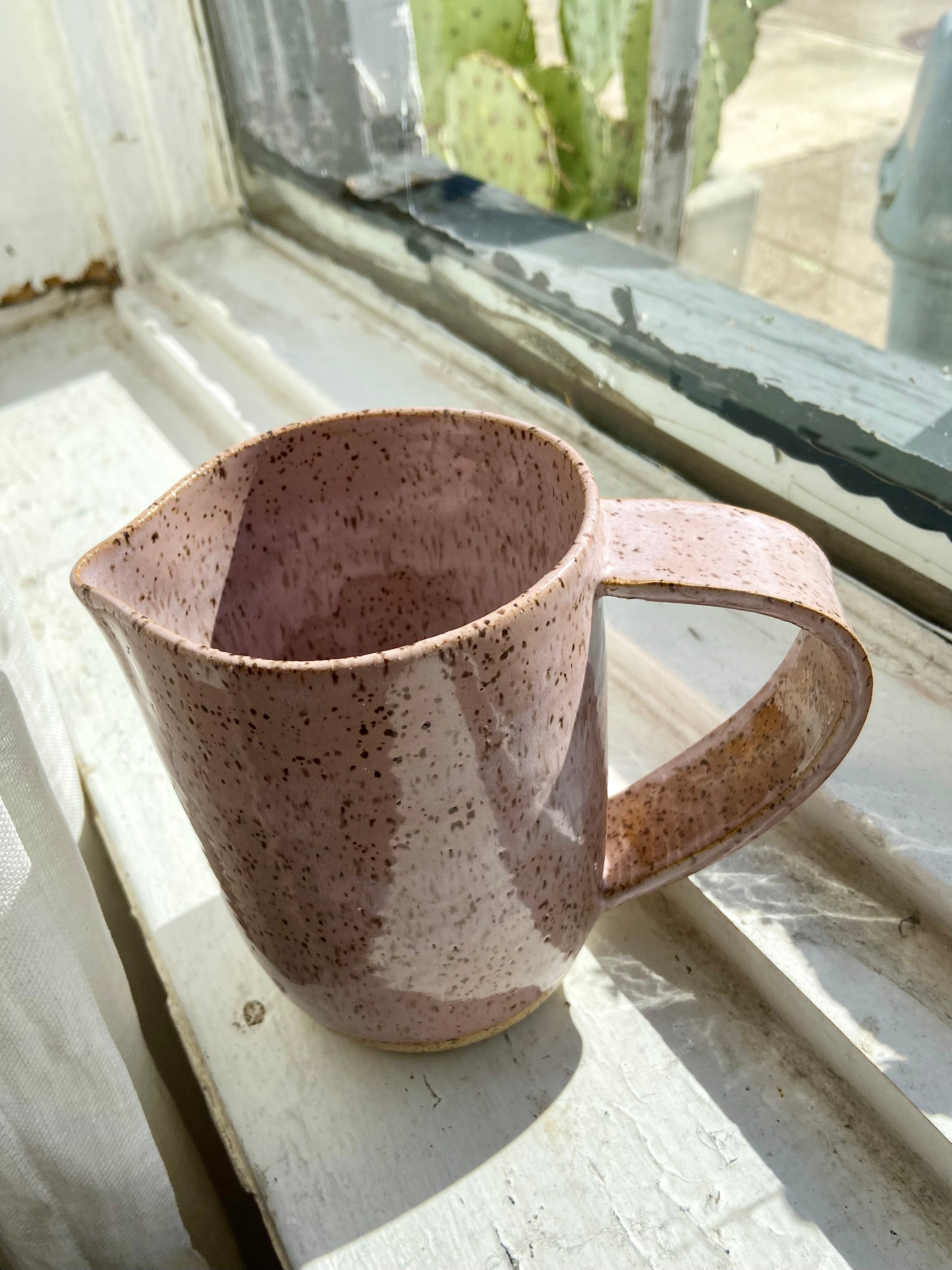 This ceramic creamer pitcher is in a gorgeous speckled lavender glaze with an unglazed natural colored bottom. It is one of a kind & handmade by local Dallas artist Hayclays.