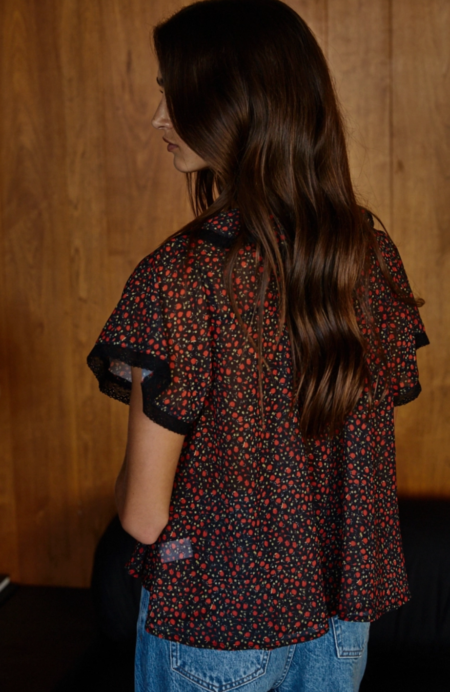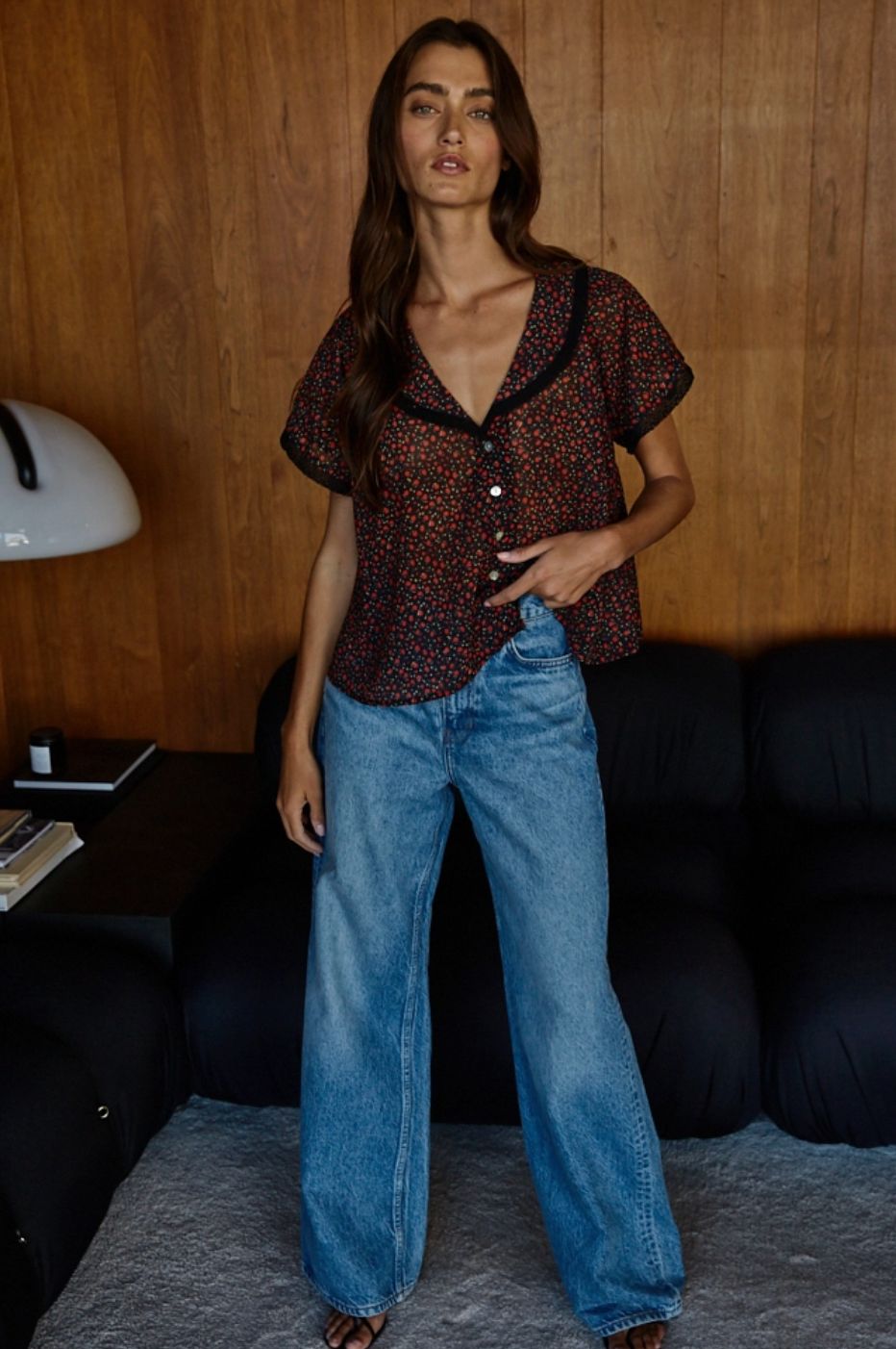The Lenny Floral Button Down is a semi sheer top with major vintage vibes. We see this top paired with your favorite denim and boots for fall. Pair with top with a black bra for a effortlessly cool look.