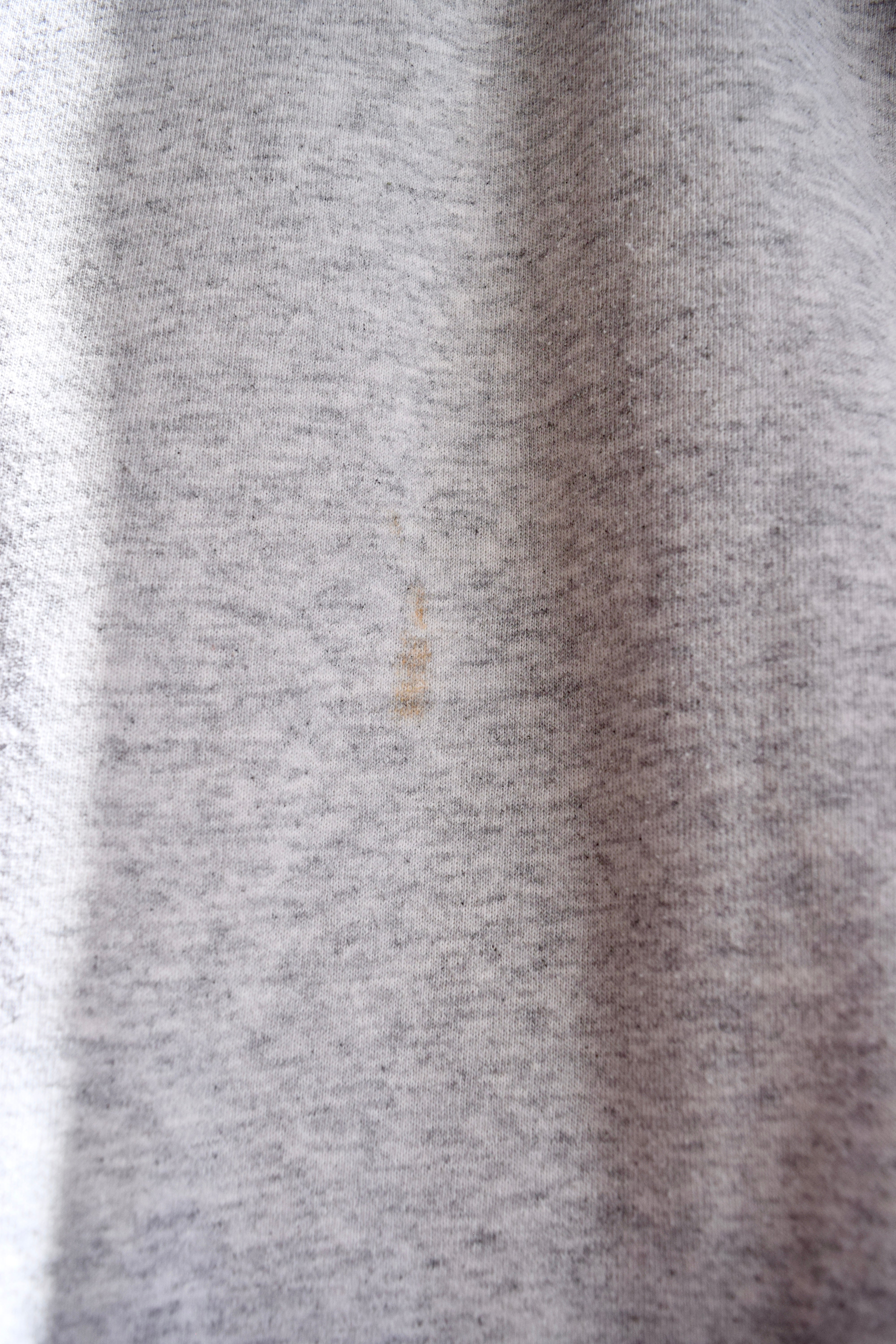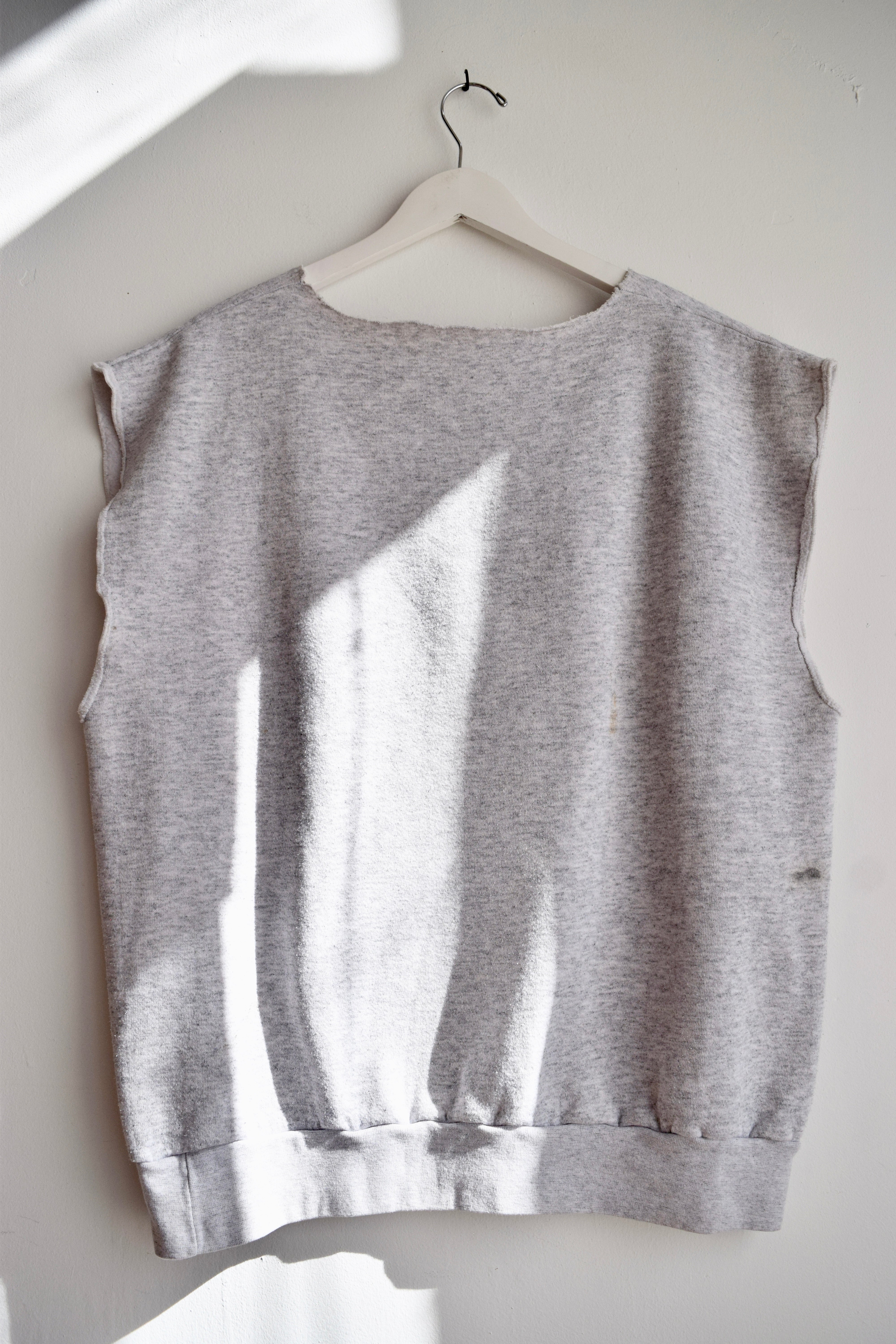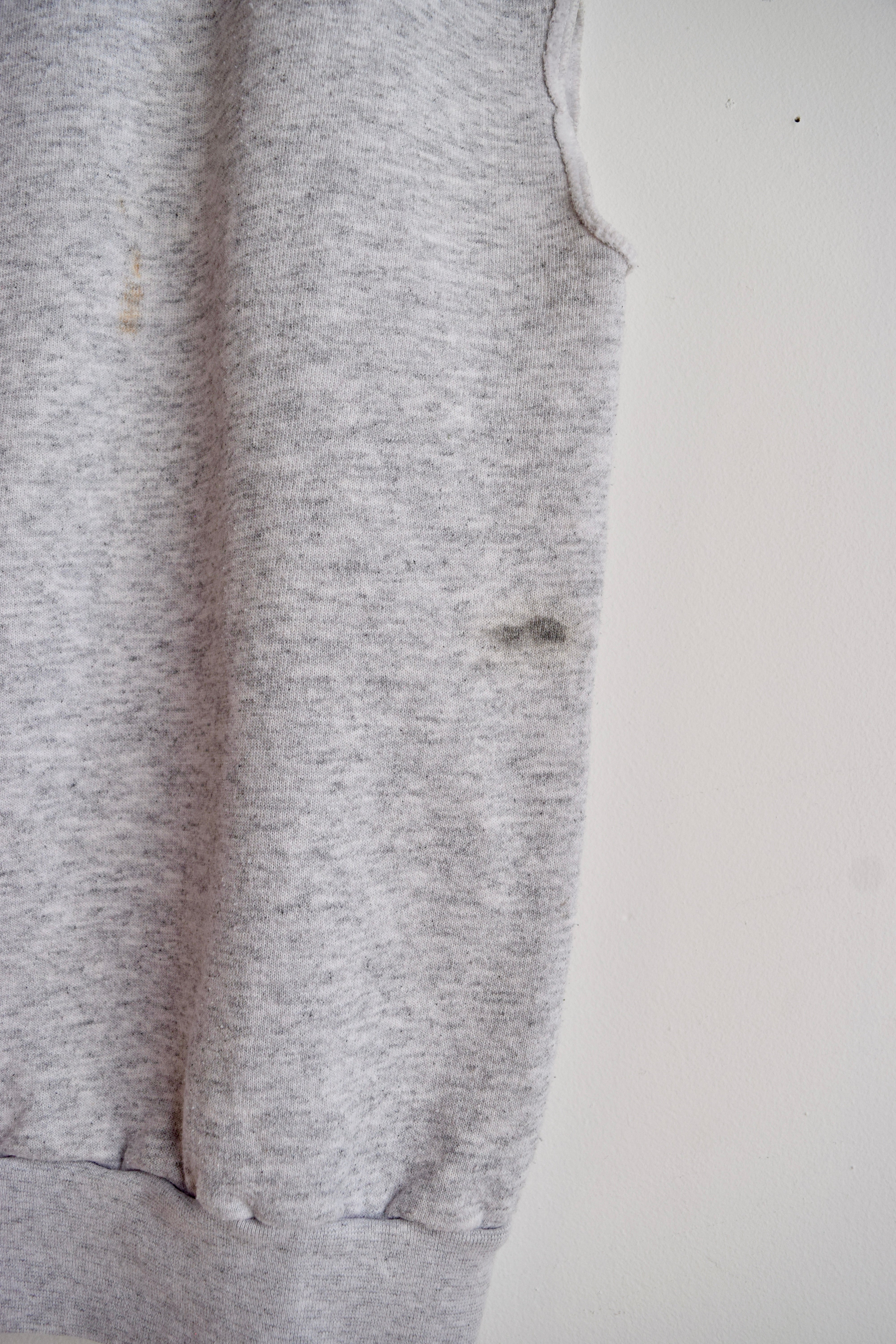 This oversized cutoff sweatshirt is perfect for lounging or layering over a turtleneck for maximum cool vibes. The tag has been cut out but feels like an XL. A few stains shown in photos.