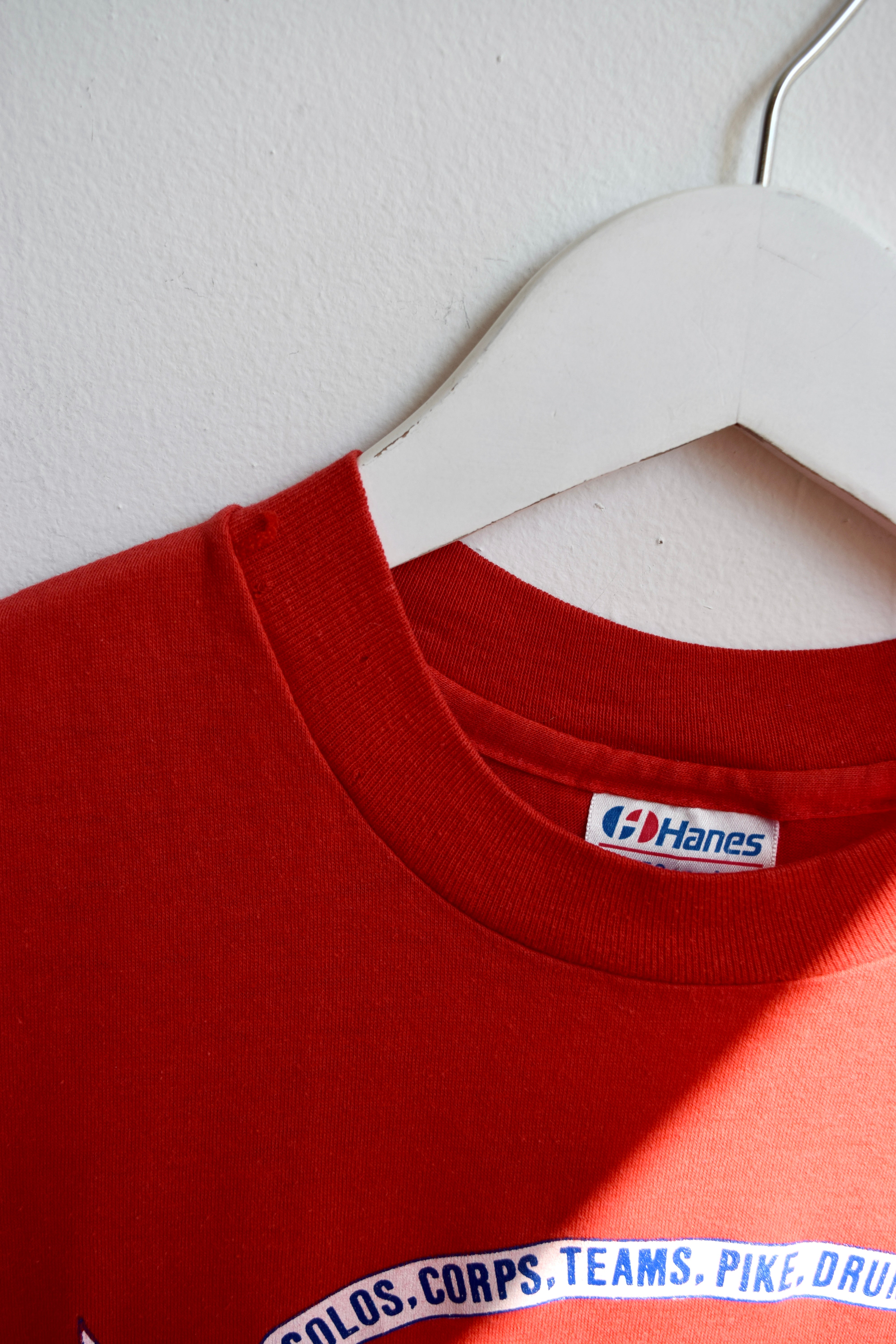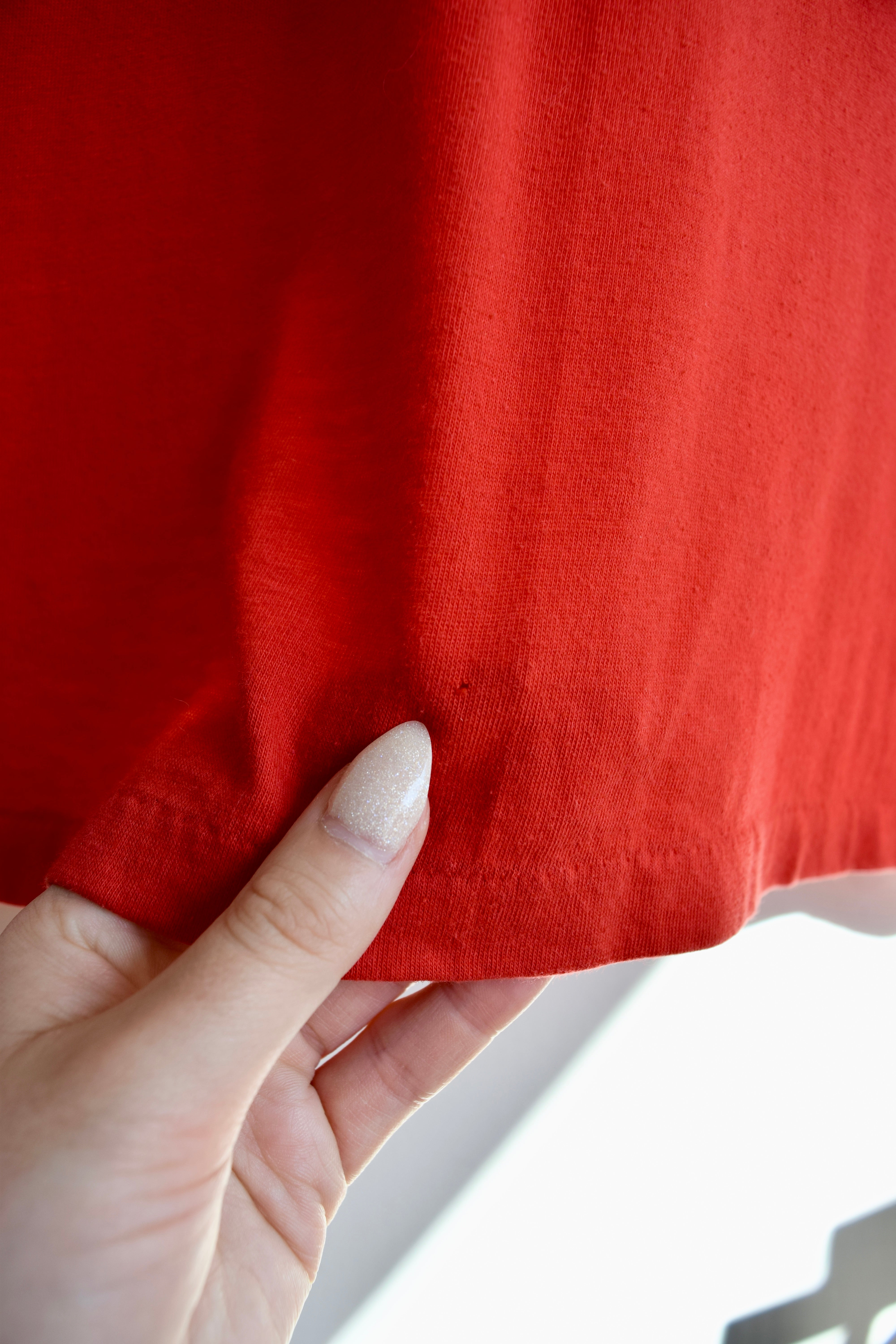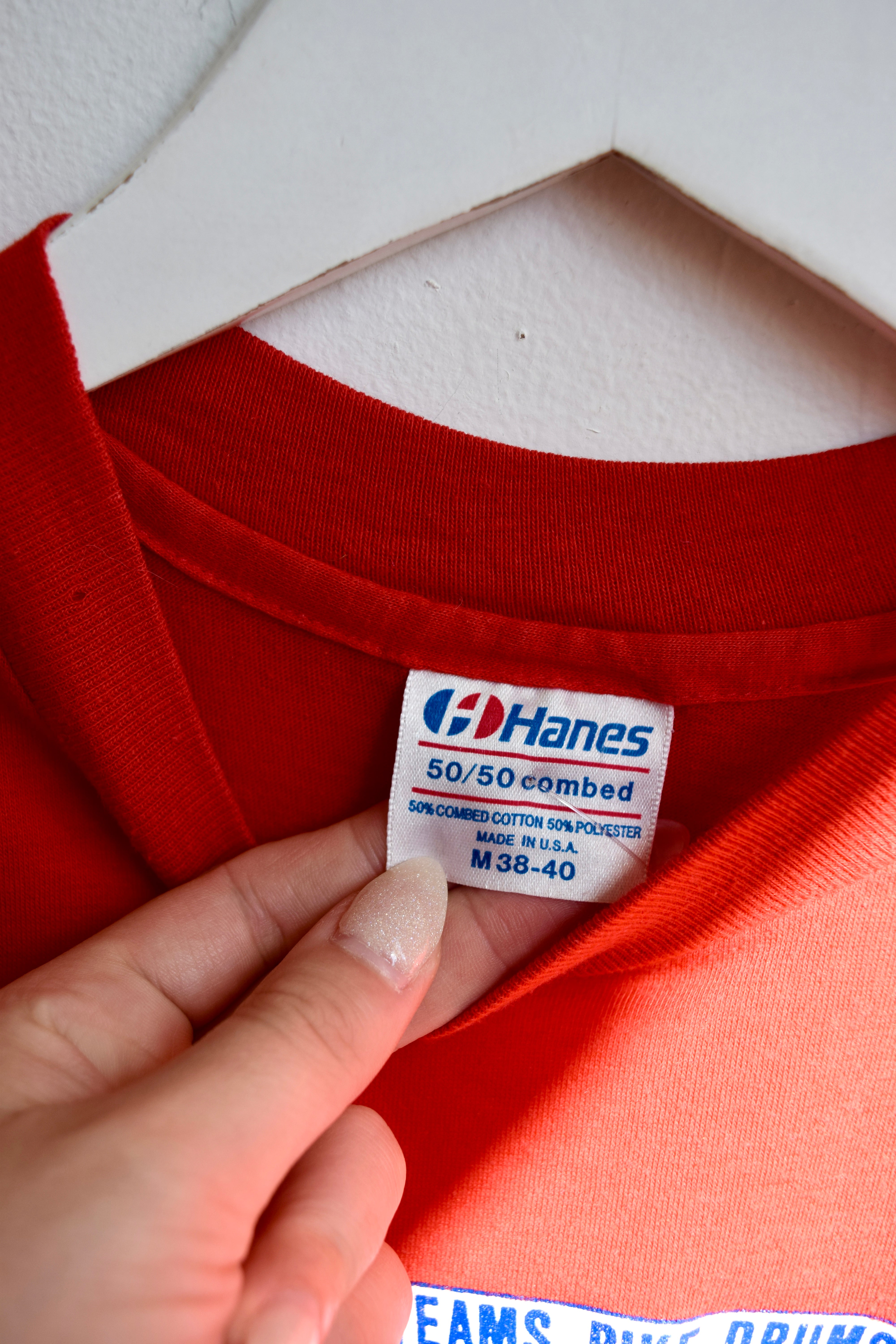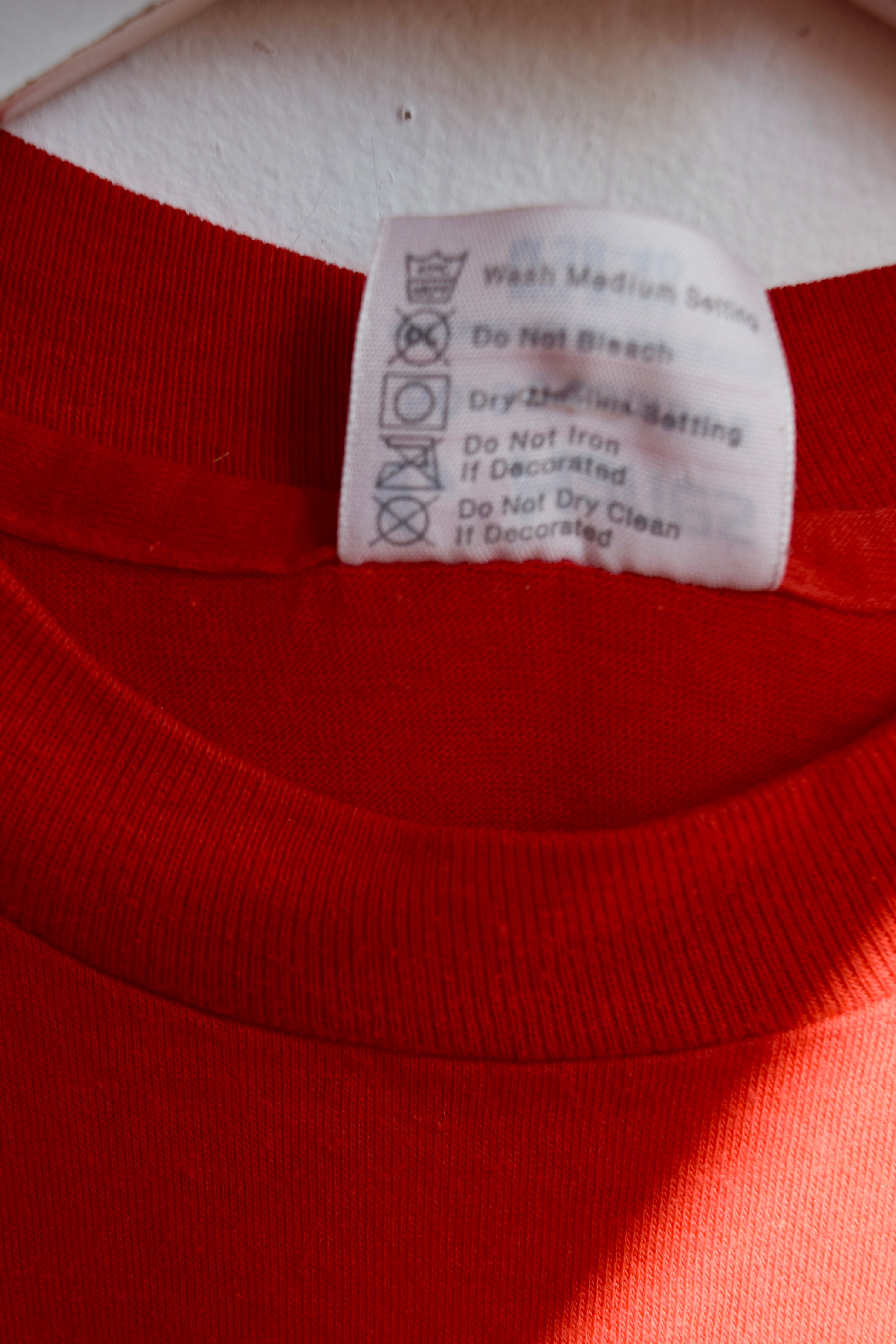 This vintage tee is super soft, the color is vibrant & graphic in great condition. Tagged size M.