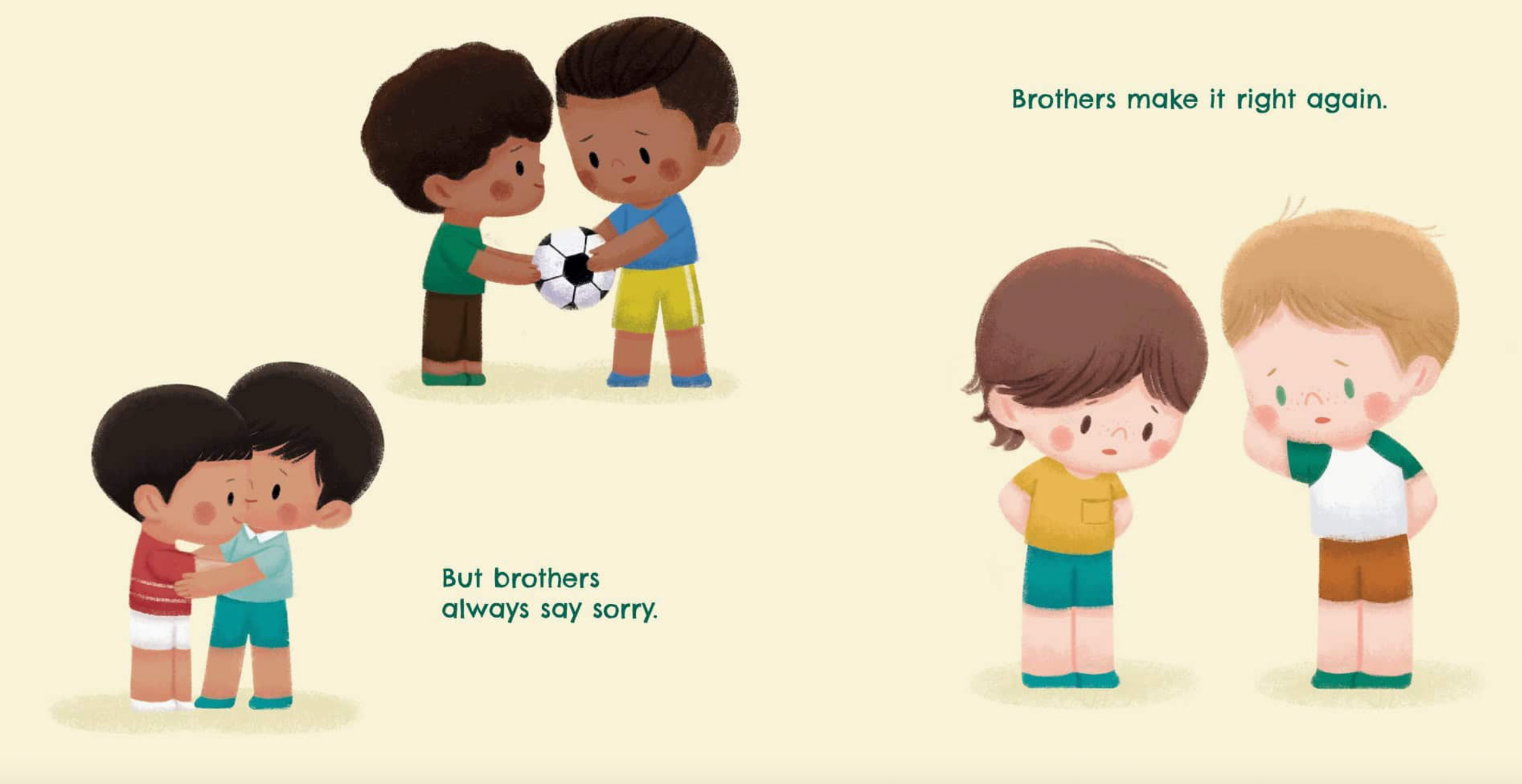 A board book about sibling adventures, squabbles, and reconnection, following three different pairs of brothers There’s something special about brothers. When brothers play together, magic happens! A brother is a friend for life, but that doesn’t mean there won’t be disagreements sometimes. Follow three cute sets of brothers as they play and explore together, argue, and ultimately reconnect. For anyone with boys who need a little nudge to get along, Brothers Are Brothers Forever is a sweet reminder that arguments happen, but sincere apologies can mend any rift.