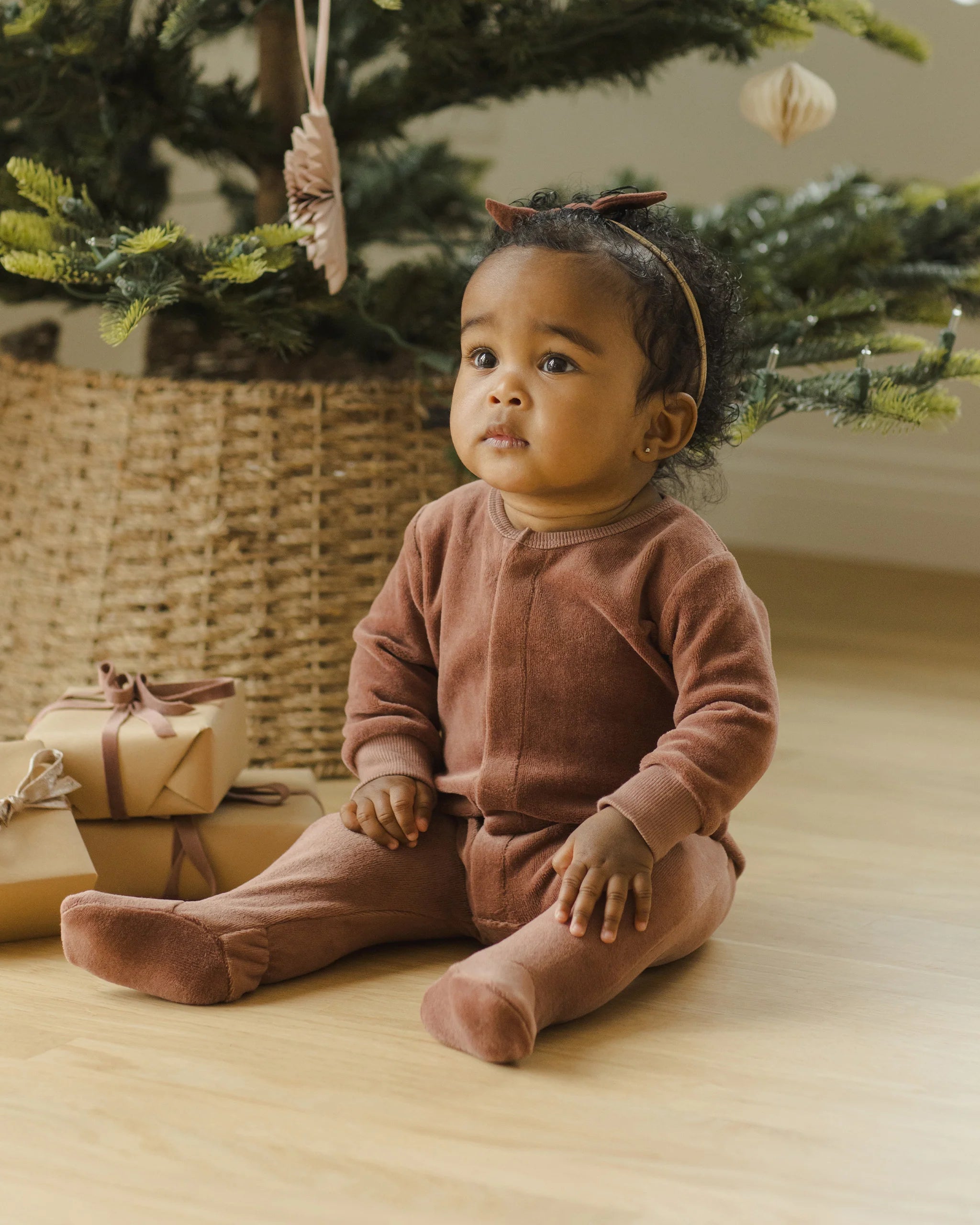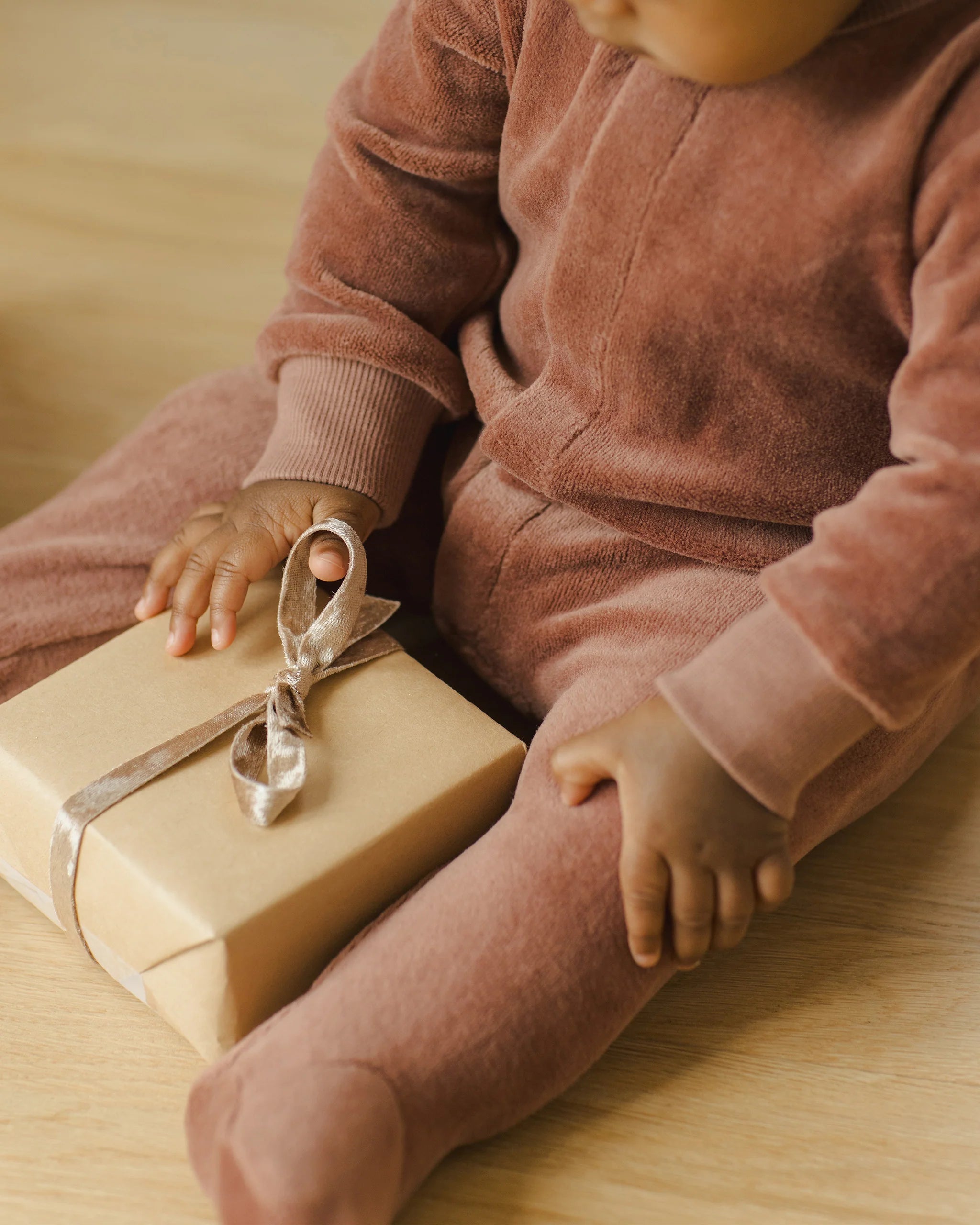 Long sleeve snap footie with hidden snap front placket in our velour fabric.