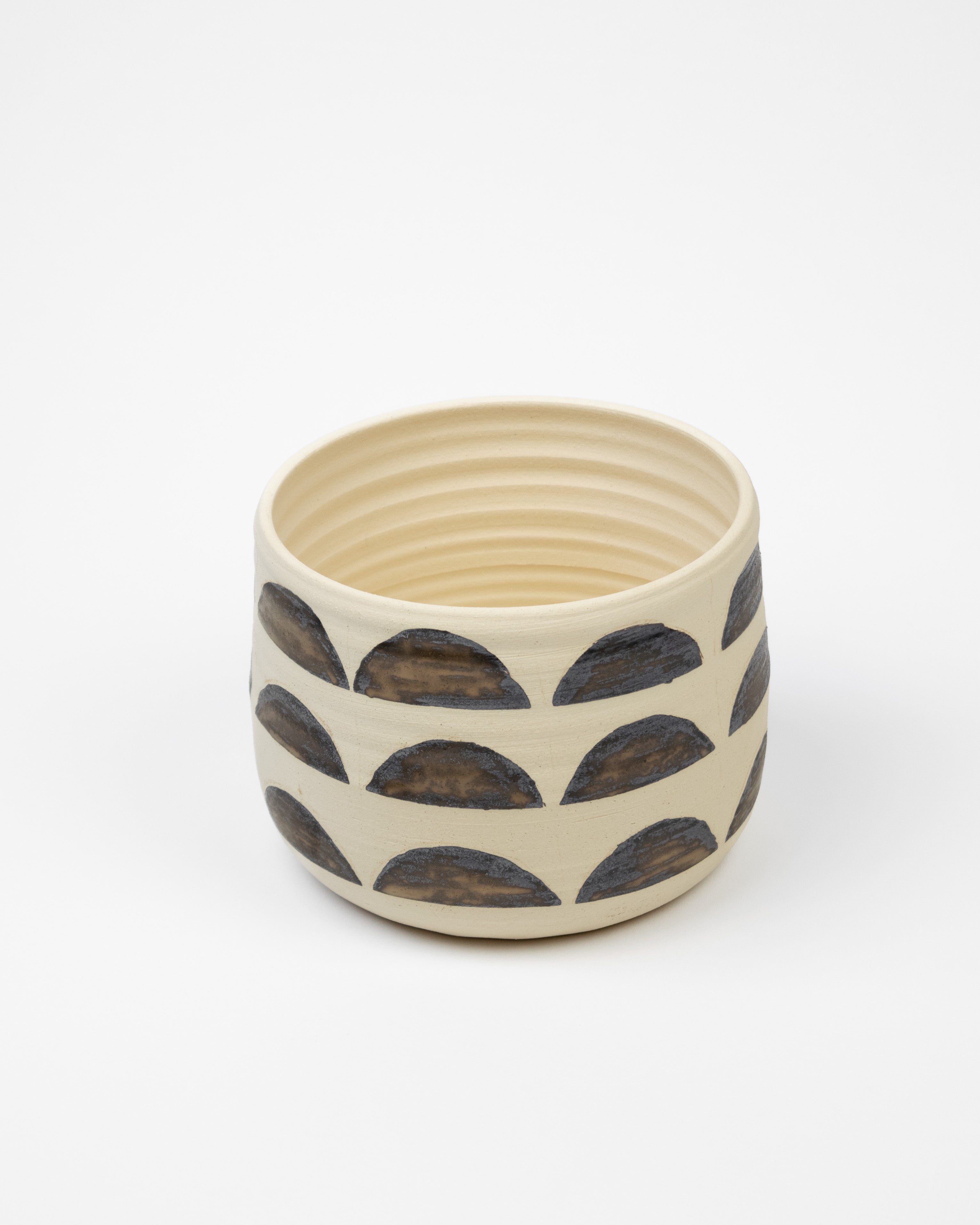 Thrown on the potters wheel with off-white stoneware and hand painted with bronze glaze.