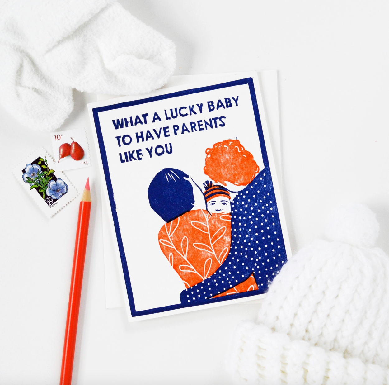 Letterpress, 100% post-consumer recycled paper, A2, blank inside, cello sleeve with envelope.