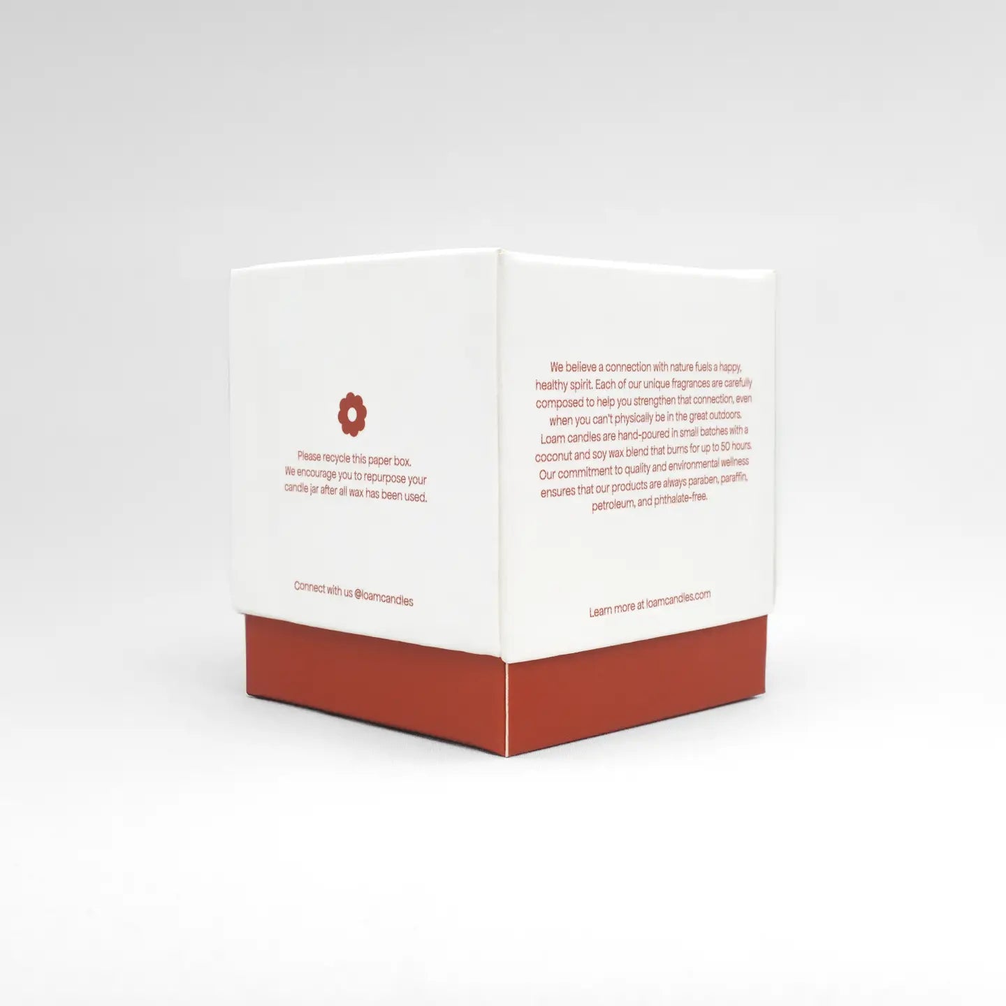 Every candle is crafted in small batches with coconut soy wax and 100% cotton wicks. Loam candles are always paraben, paraffin, petroleum, and phthalate-free.