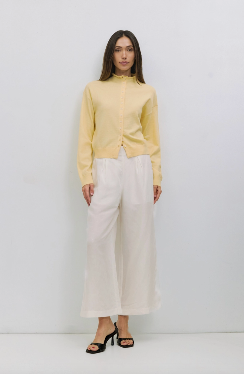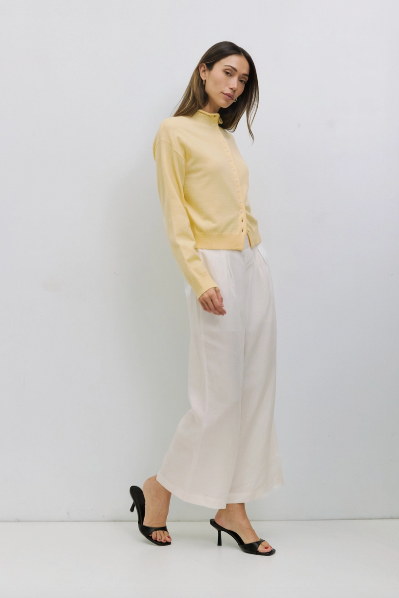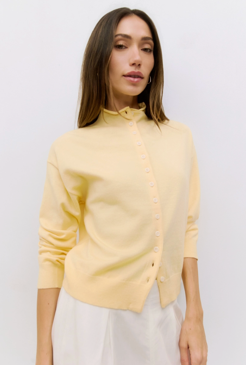 The Brooks Cardigan is a relaxed, high-neck silhouette crafted from midweight sweater knit for a cozy, structured feel. Featuring a turtleneck, drop shoulders, long sleeves, and full button front, it offers timeless layering with modern ease.
