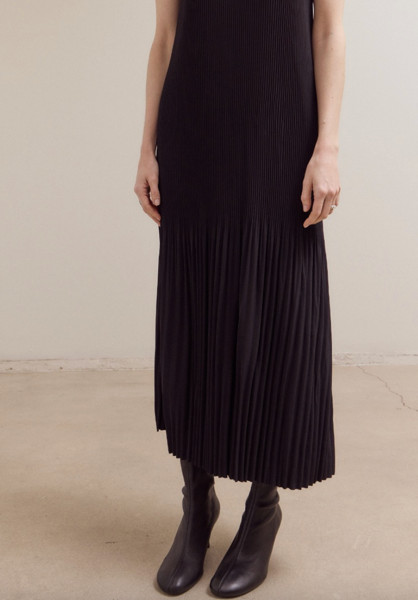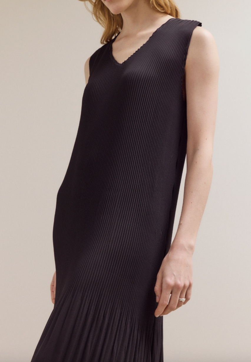 The Brie Wrinkled Pleat Maxi Dress is a sleeveless dress with fun slinky pleats. We love the movement this dress gives. Dress it up and wear it to an evening event paired with a simple heel and accessories. Dress it down by pairing it under an oversized blazer and boots. This piece has so much potential.