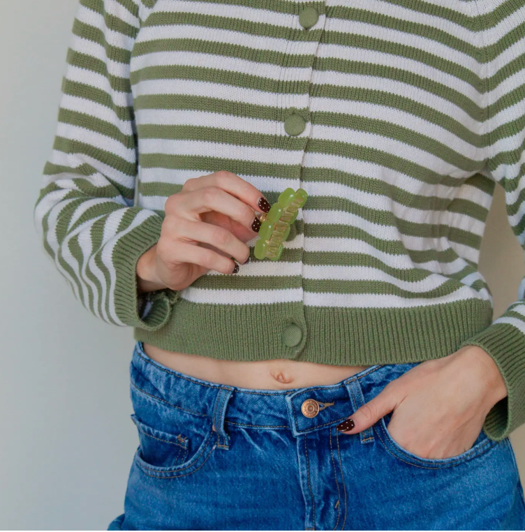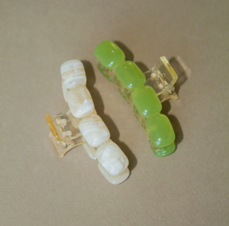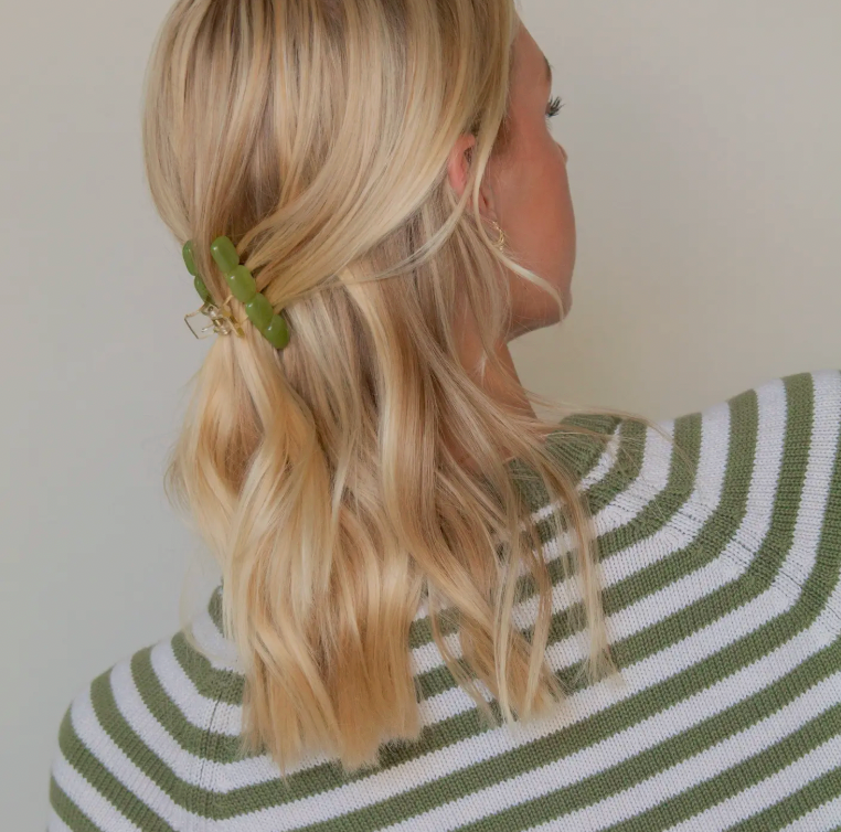 This darling claw clip is so perfect for everyday and the fall season! It comes in the perfect green color, as well as a stunning marbled cream. The best way to elevate your updo for the day--this is a small size 2.5 inch claw clip.