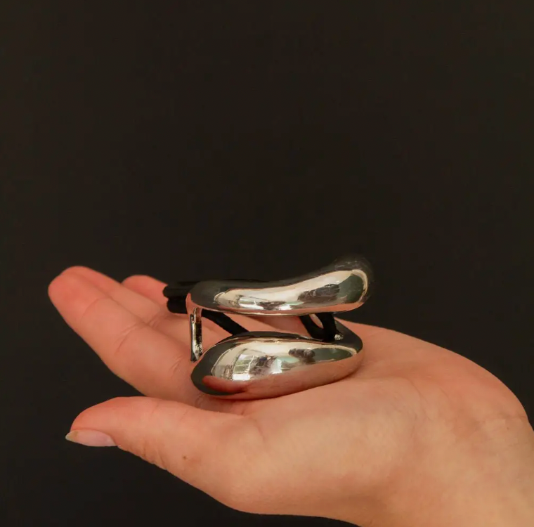 This hair tie will be the best addition to your closet! Made with a black elastic and a silver metal brooch; It will hold your hair better than your average hair tie, and give it the cutest touch while still feeling so simple.