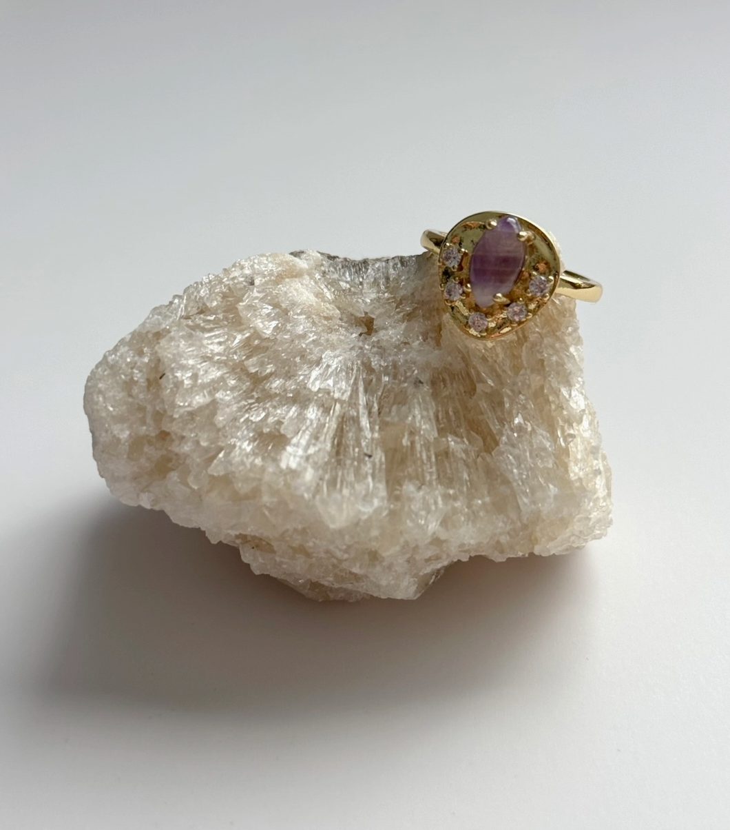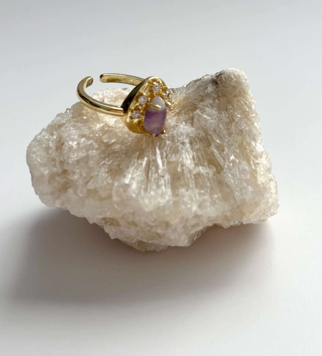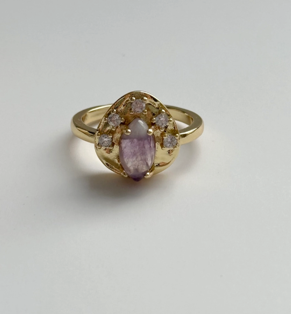 18K Gold Filled Ring embedded with dainty clear CZ stones and one Amethyst stone in center