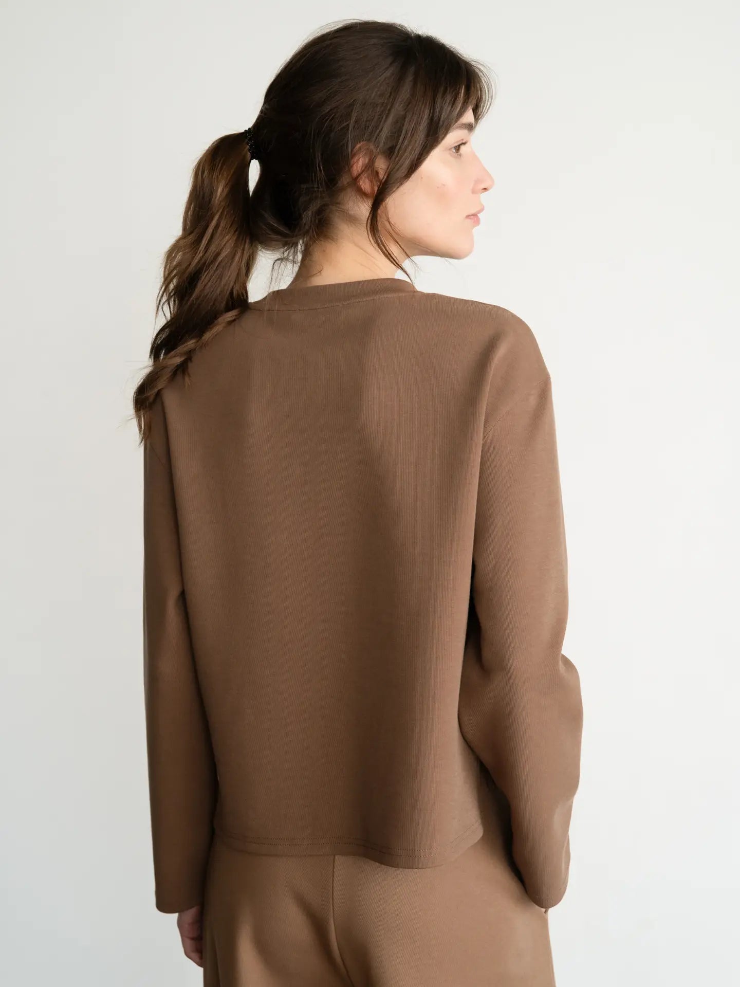 Lightweight knit with a smooth finish, perfect for relaxed weekends or elevated loungewear looks.