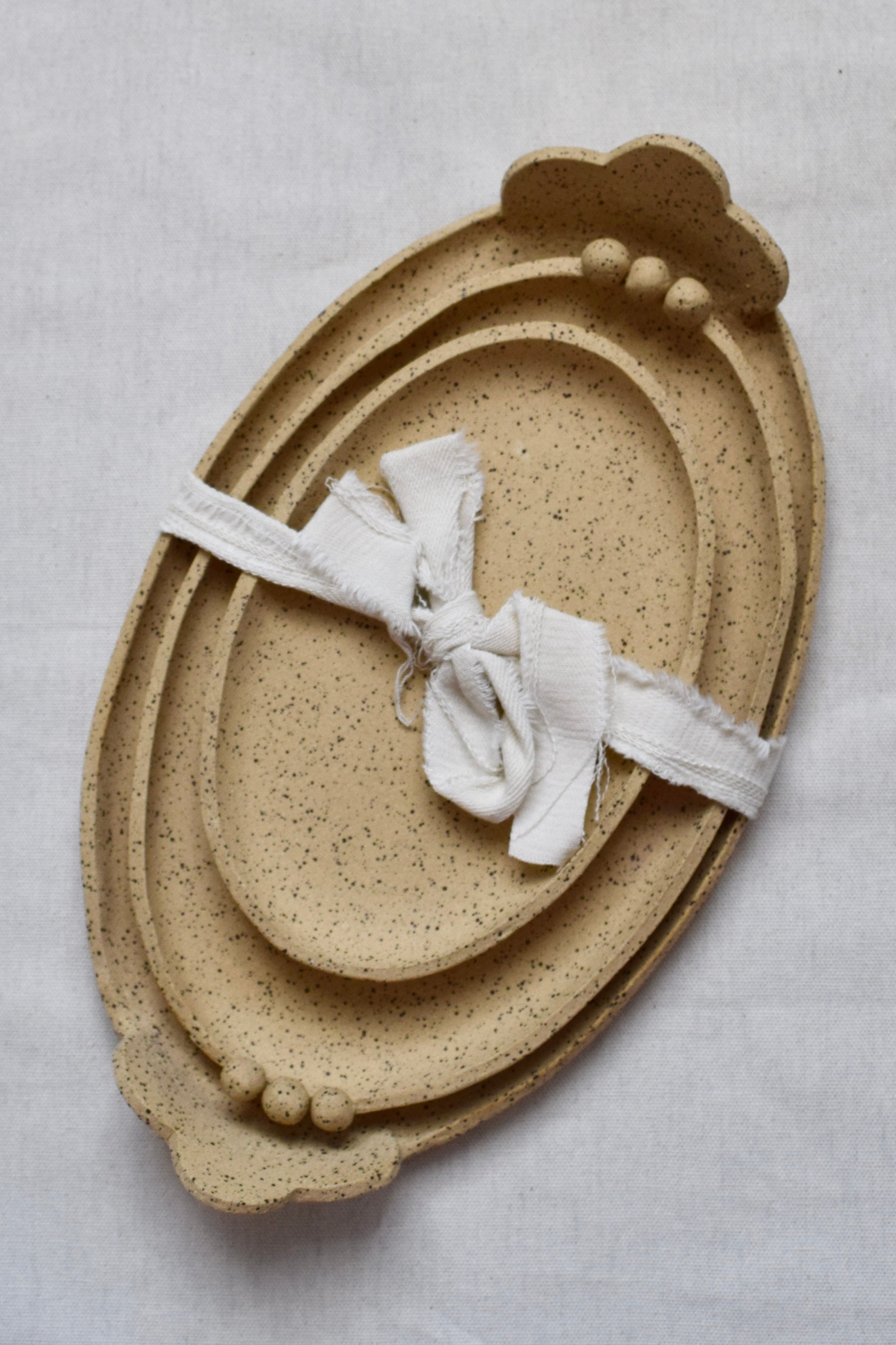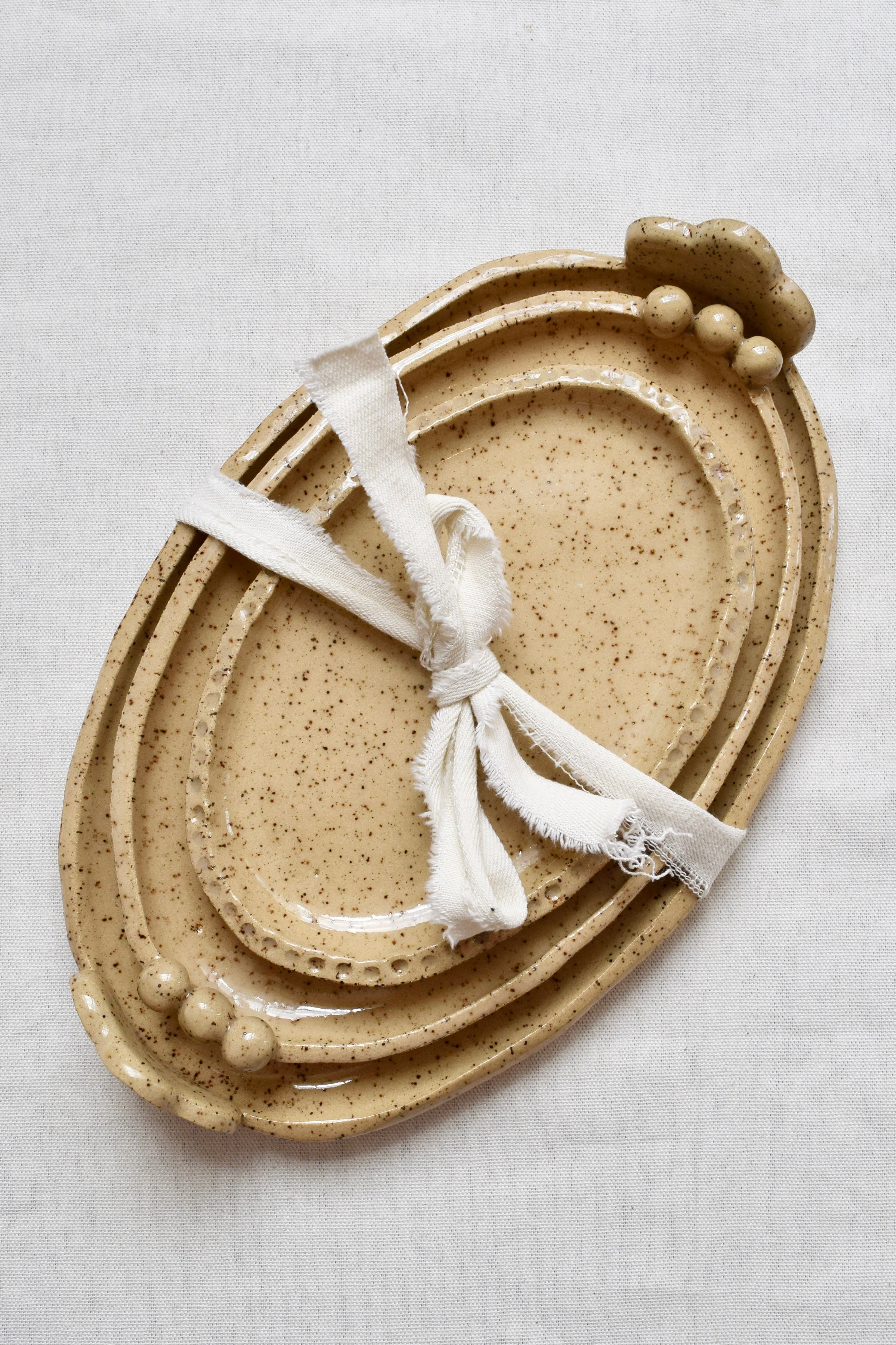 These gorgeous plate sets come in multiple styles & colors. They are one of a kind & handmade by local artist Hayclays.
