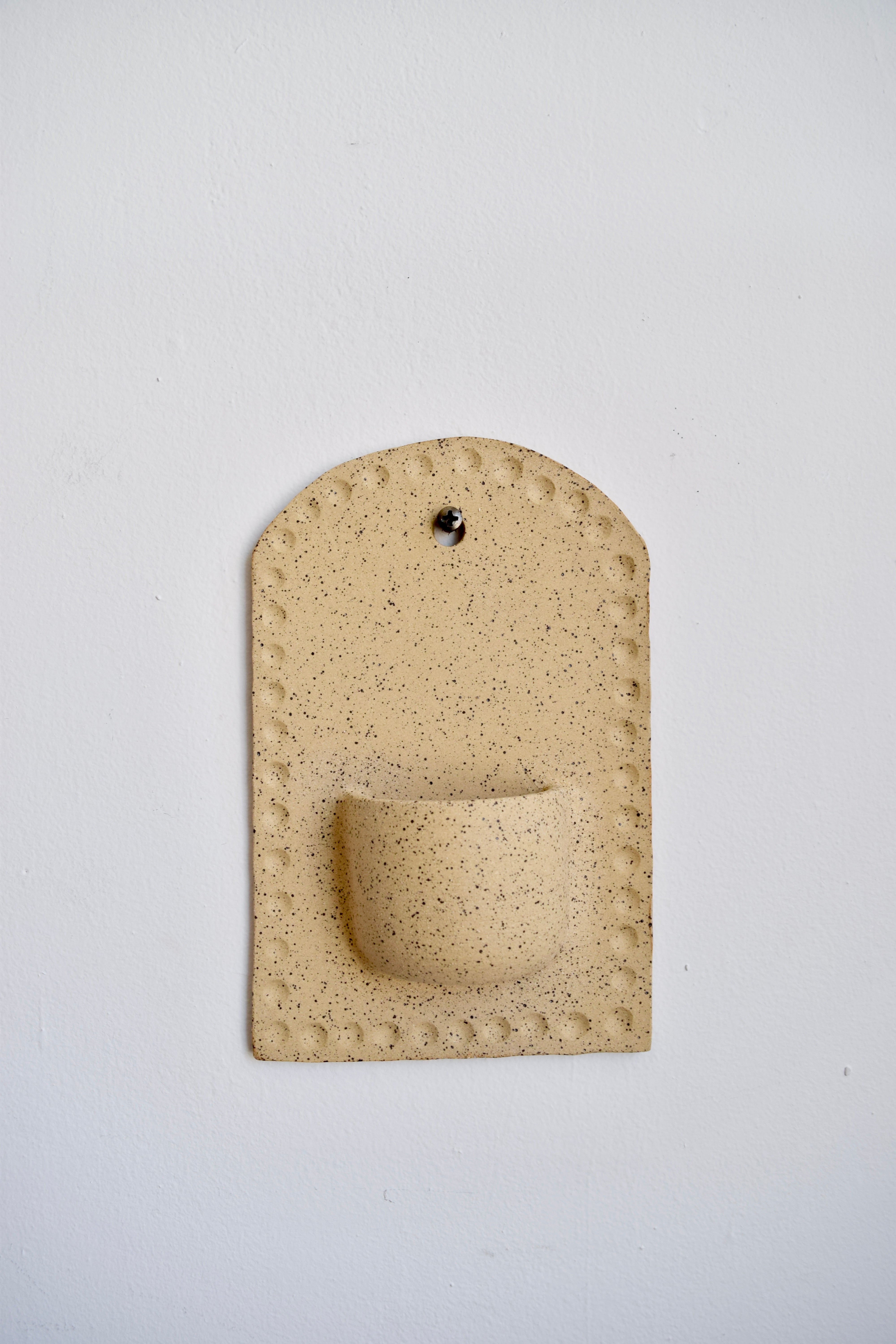 The cutest one of a kind wall pocket is here! Burn some cone incense in it, or even house a small plant. Each piece is handmade by local artist Hayclays.