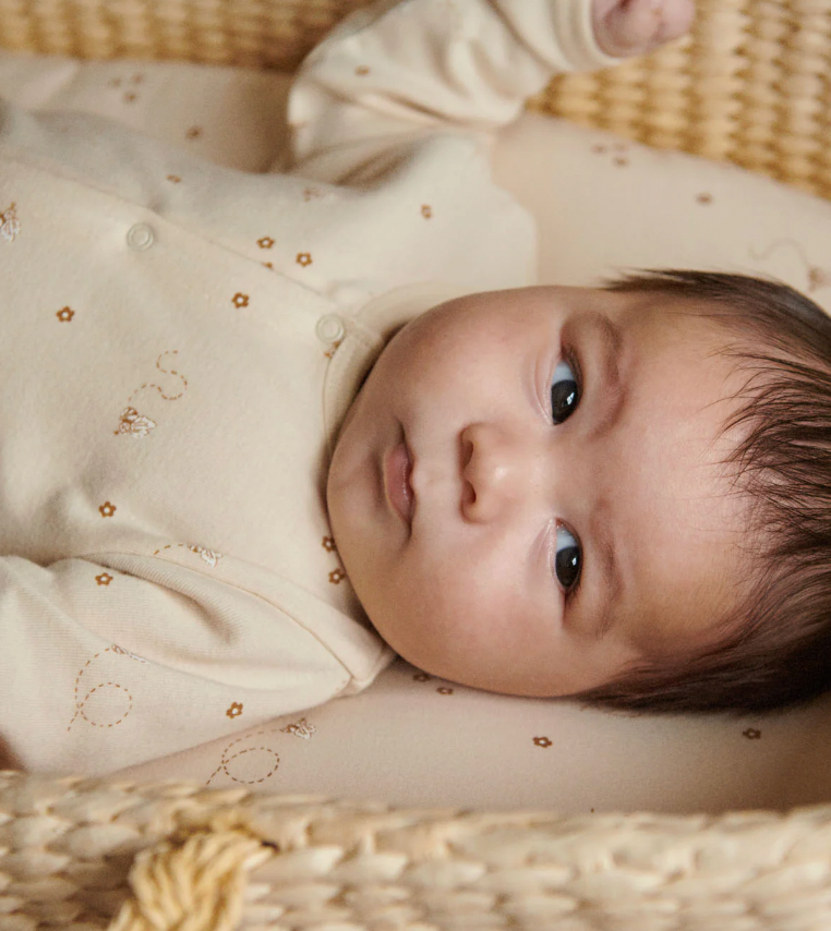 All in one suit is perfect in baby's first few months, for both day and nightwear. The Stretch & Grow keeps baby's feet covered and features convenient snap domes all the way down the front and around the legs to facilitate easy nappy changes. Made from soft and breathable organic cotton. To minimise shrinkage, this fabric has been pre-washed.