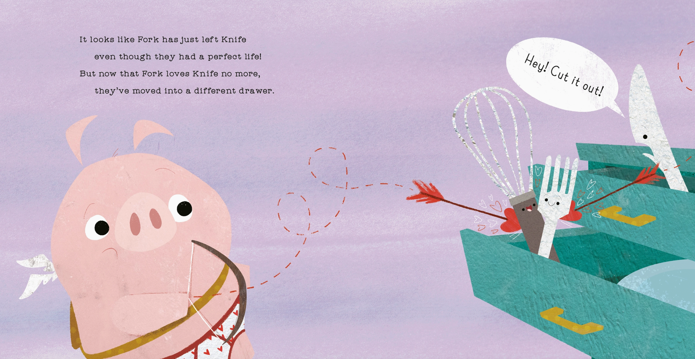 Cupig absolutely loves Valentine's Day. Every year she enjoys spreading love and cheer to every creature, far and near. But when a storm blows through and sends her arrows off course, Cupig accidentally puts arrows in hearts that don't need to be mended. Peanut Butter has stopped loving Jelly! Salt and Pepper have broken up! Needle and Thread are falling apart at the seams!Â