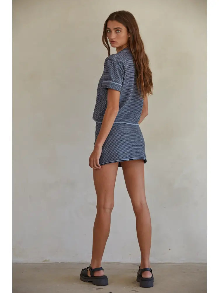This knit sweater top features a half button collar neckline & rolled sleeve. It is perfect to dress up a pair of casual jeans.