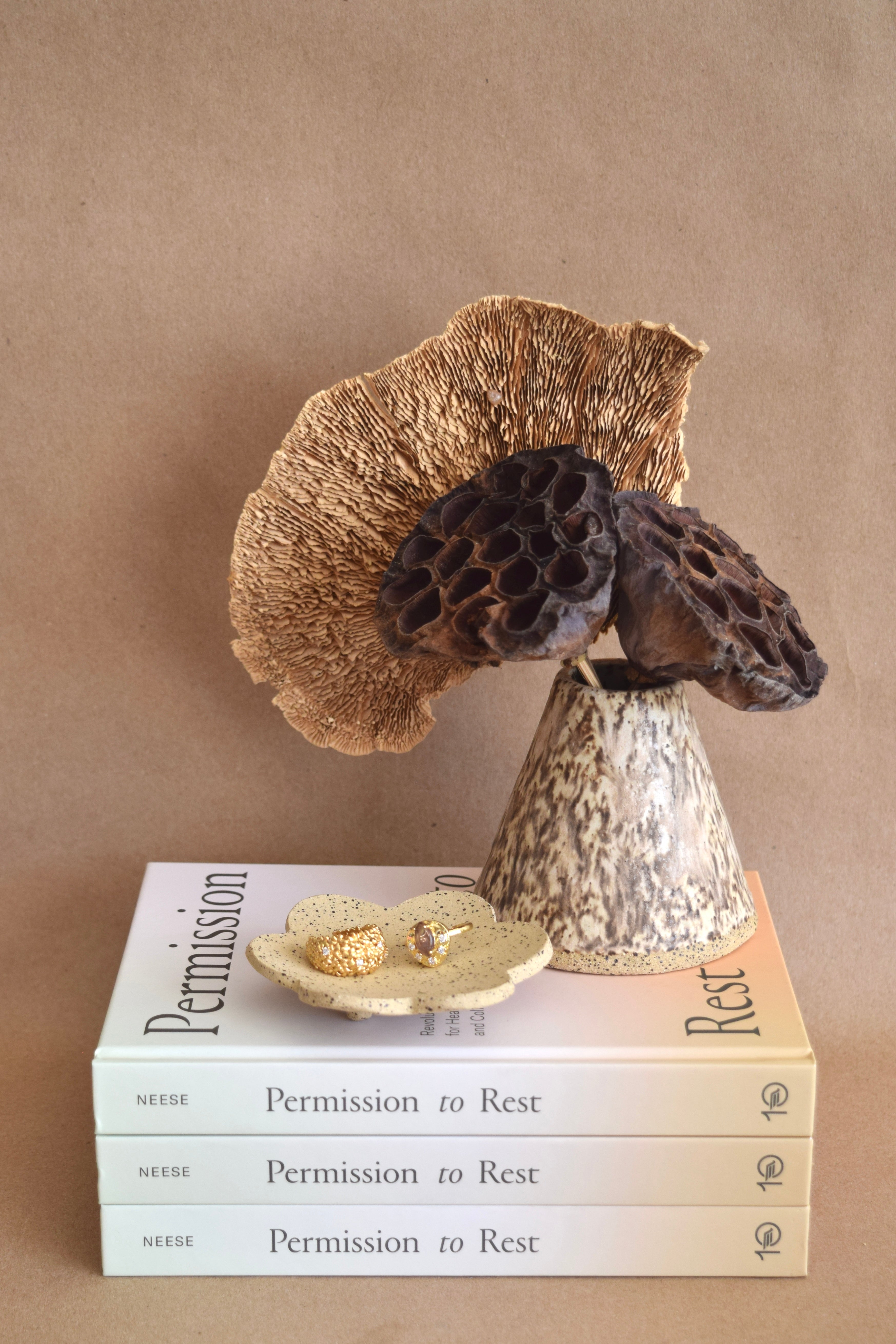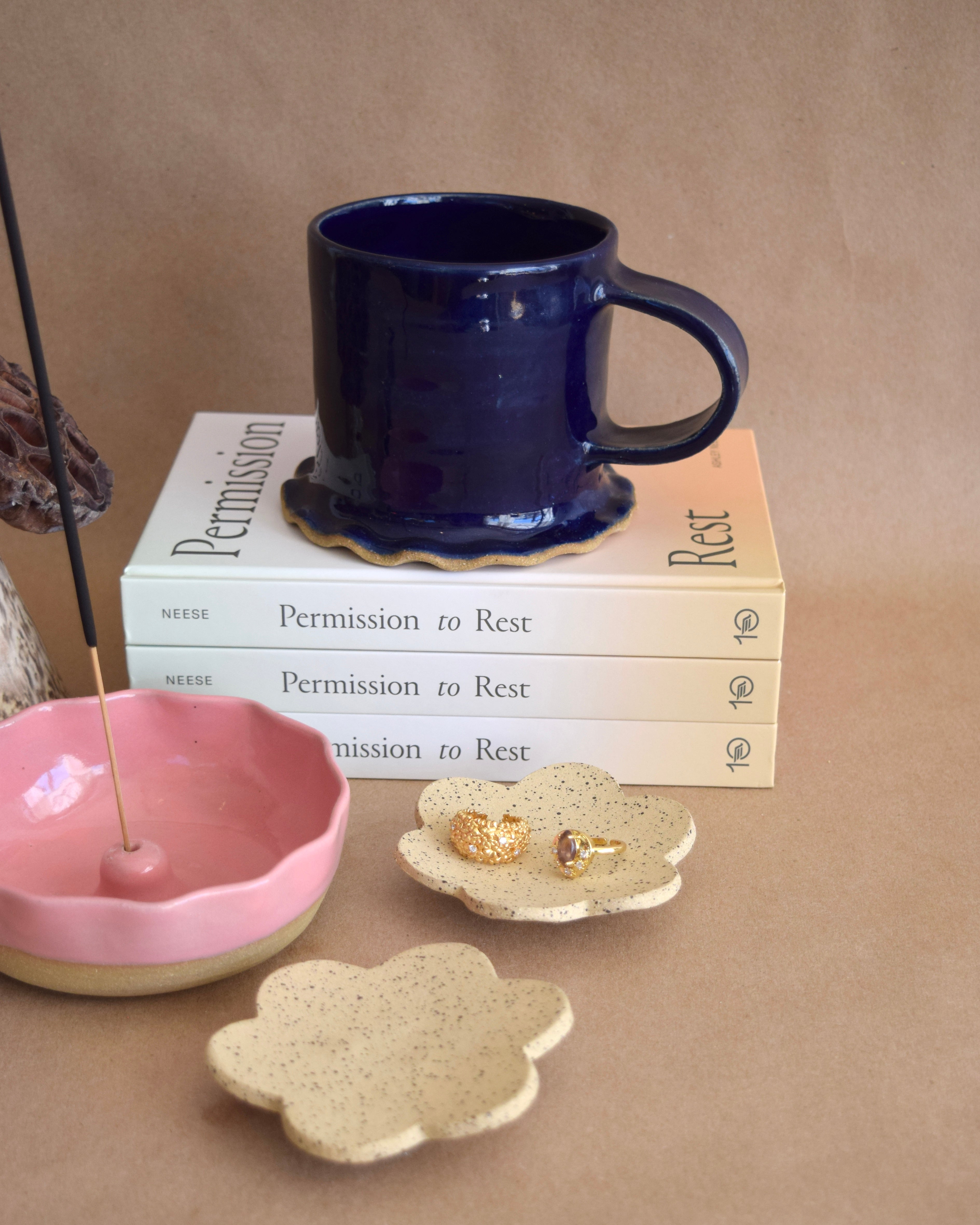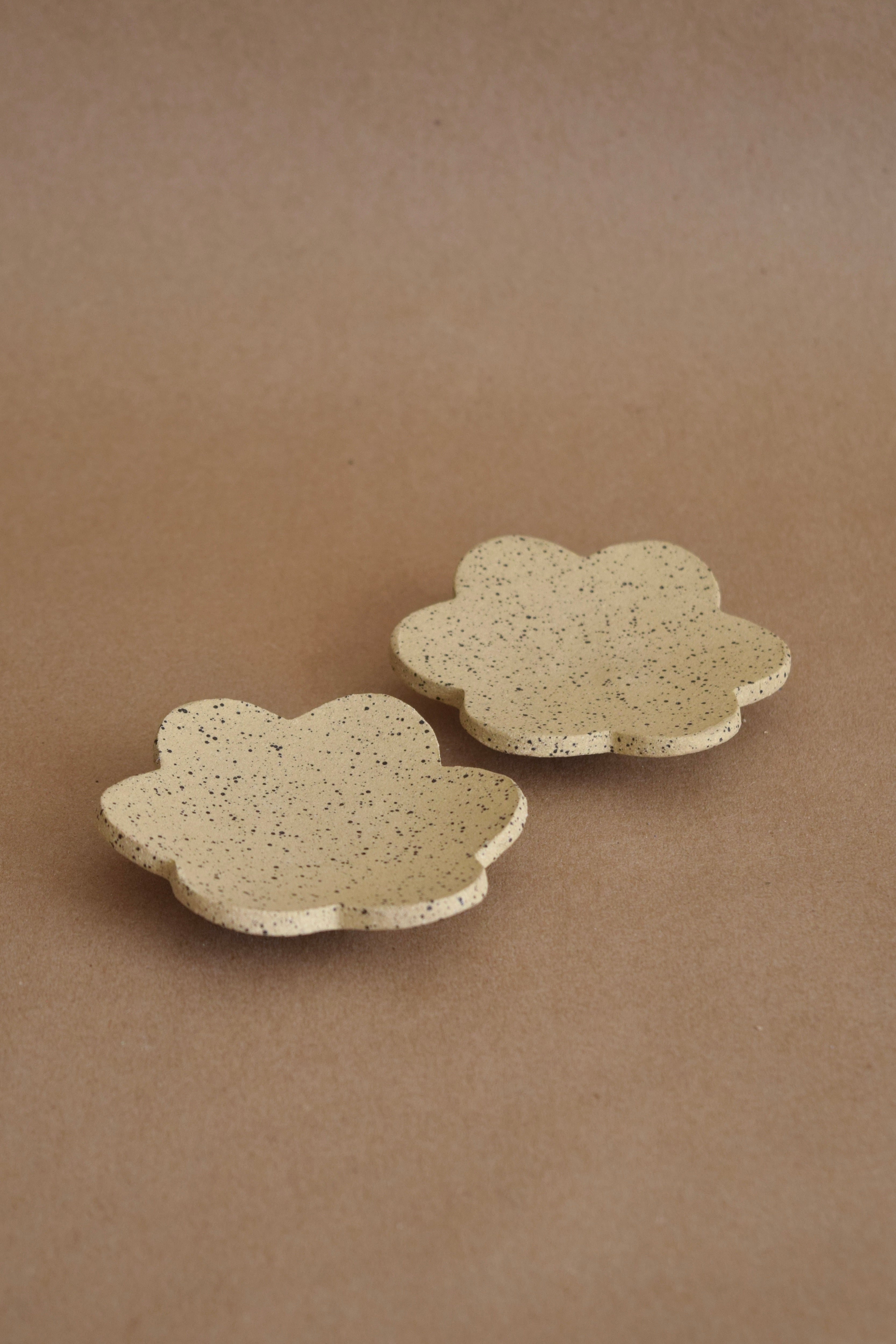 Jewelry, soap, tea light candle? This small flower dish serves many purposes! She's petite with 3 ball feet and a speckled texture throughout. Handmade by local Dallas potter, Hayclays.