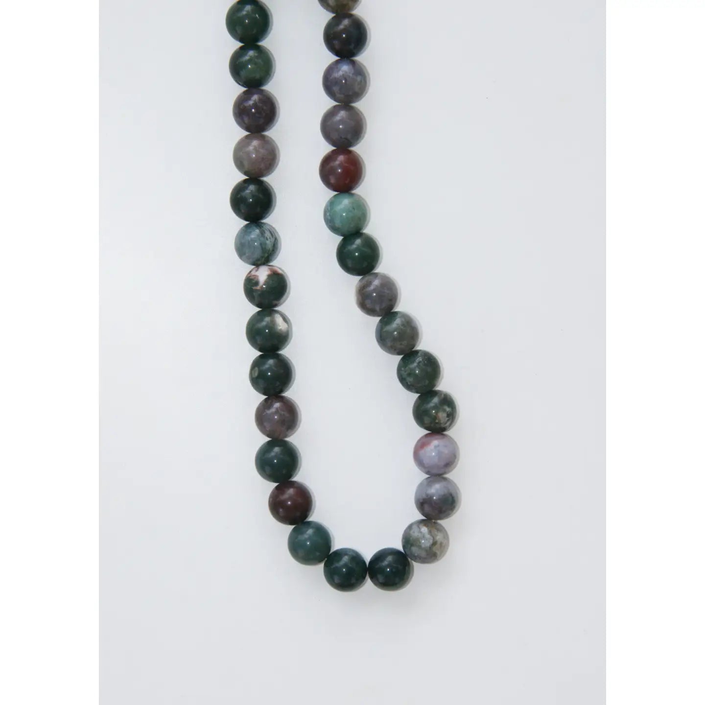 Beaded necklace with muted tones of purples and greens, lending a lush and vibrant look. Crafted with smooth Indian Jasper beads, Jardin offers a refined elegance with its subtle yet vivid color palette. The gemstone's natural properties promote grounding, stability, and balance.