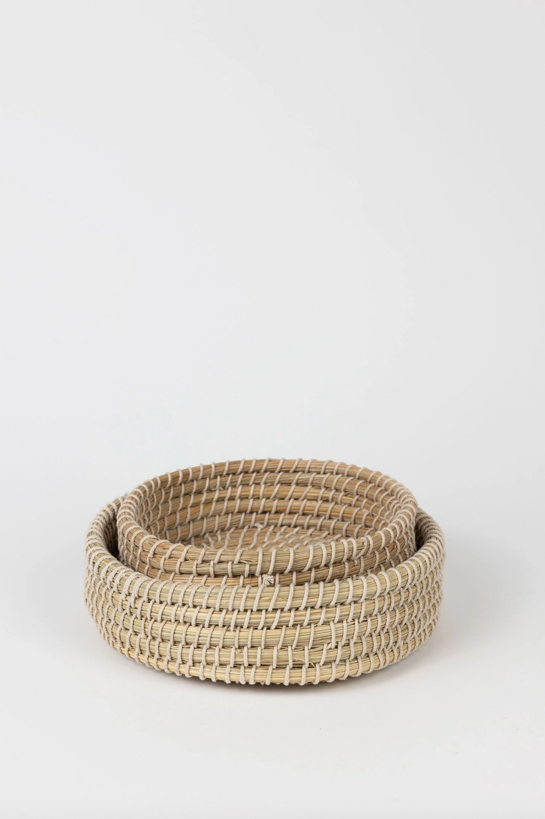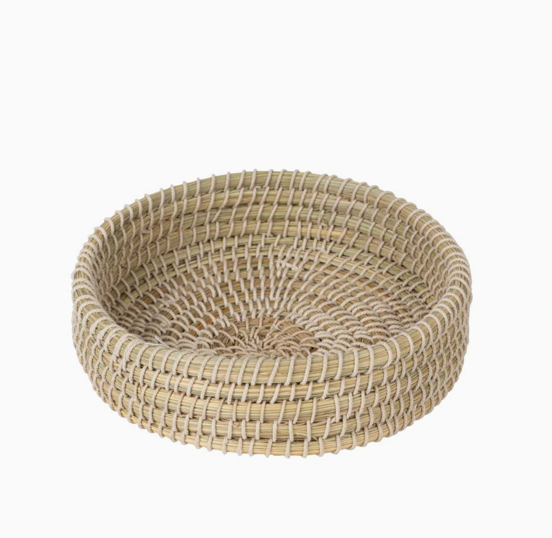 An incredibly versatile basket, the Kaisa Grass Tray 8" is handcrafted by makers in Bangladesh of kaisa grass and cotton wrapping. Whether you're looking for a fruit basket, entry valet tray, desktop organizer, tablescape basket or any other clutter corral, the Kaisa Grass Tray in two different sizes can do the job with style and sustainability.