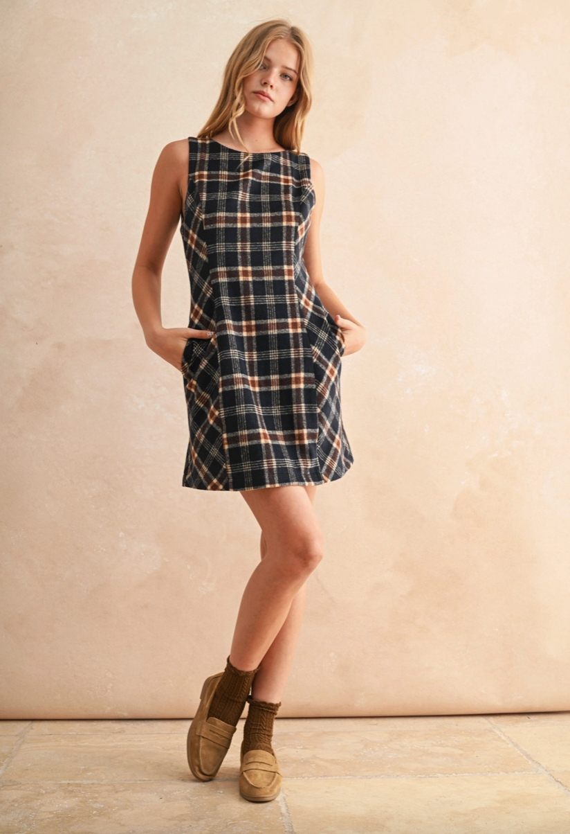 The Mila Plaid Dress is a super cute plaid midi perfect for fall. We see this dress paired with a sock and loafer for a casual day to day look. Dress it up with tights, heels and a leather jacket for a night out.