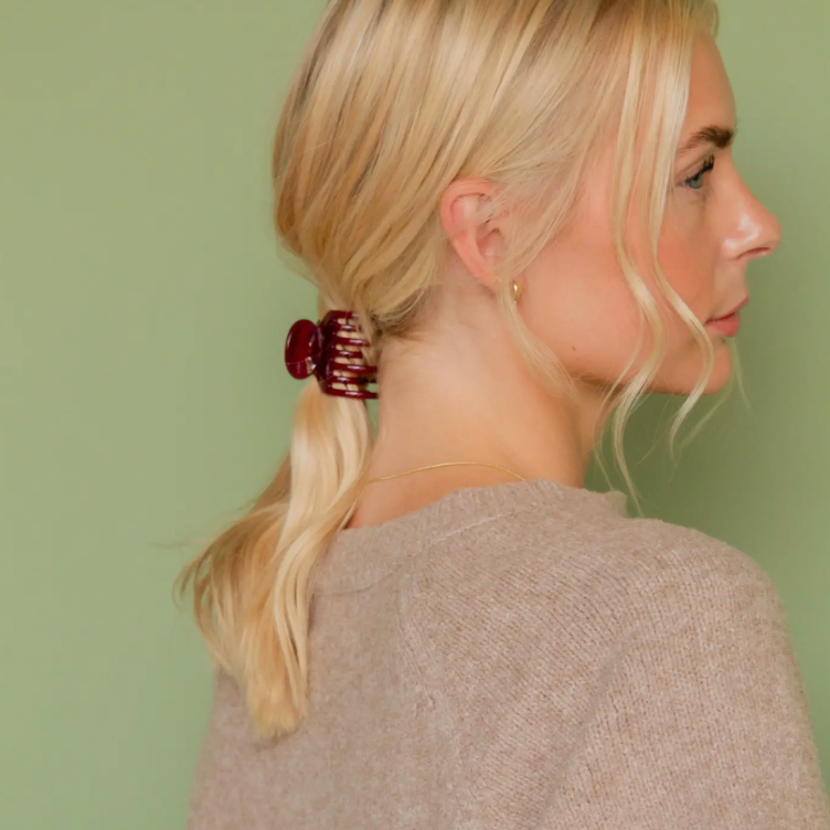 This unique & stunning claw clip is the cutest size, and is the absolute perfect deep red color for this time of year! The best way to elevate your updo for the day. This is a mini size claw clip measuring at 1.5 inches.
