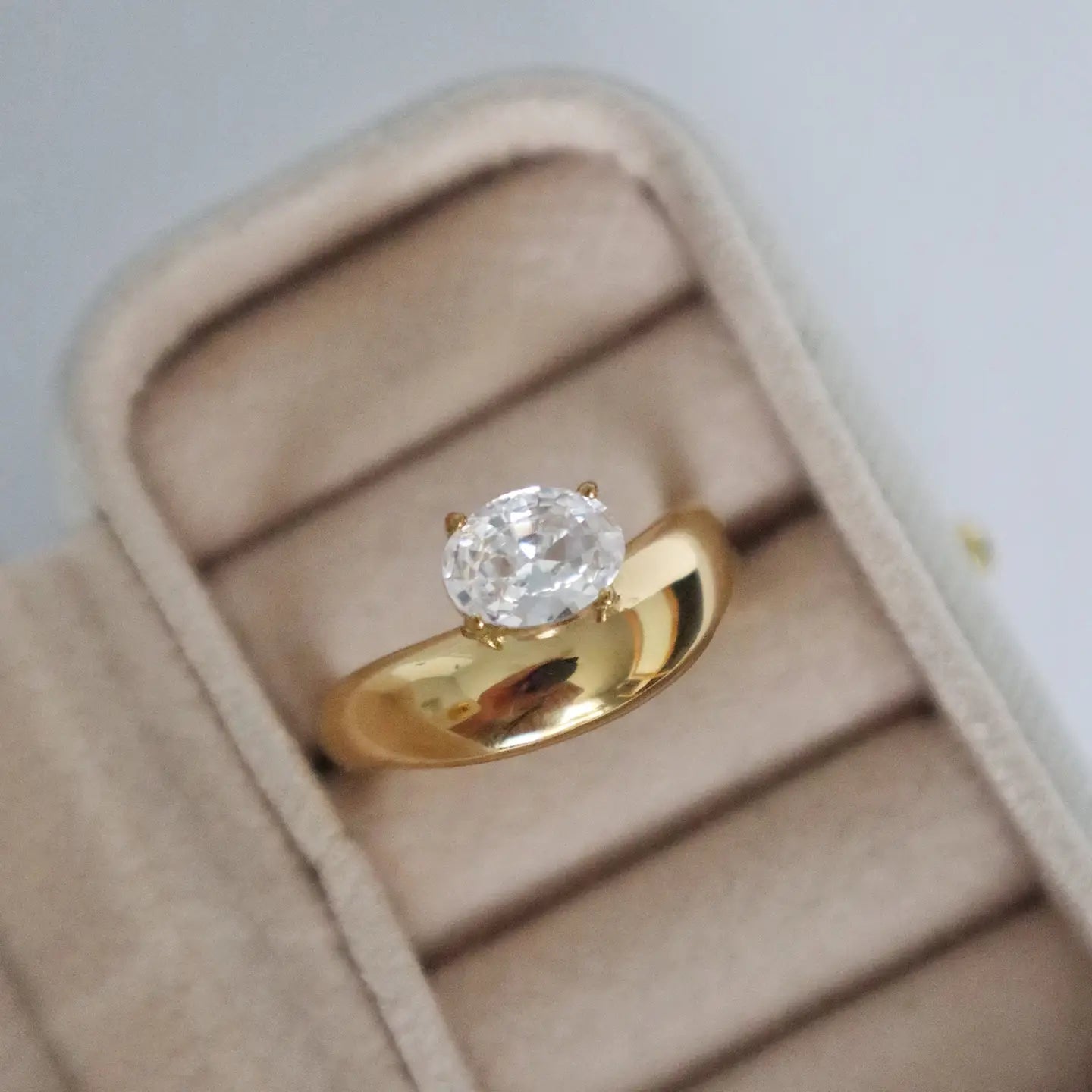 Add a playful twist to your jewelry collection with the Noelle Curve Ring. Featuring a sleek curved band topped with a sparkling oval zircon stone, this ring brings a fun and elegant vibe to any outfit.