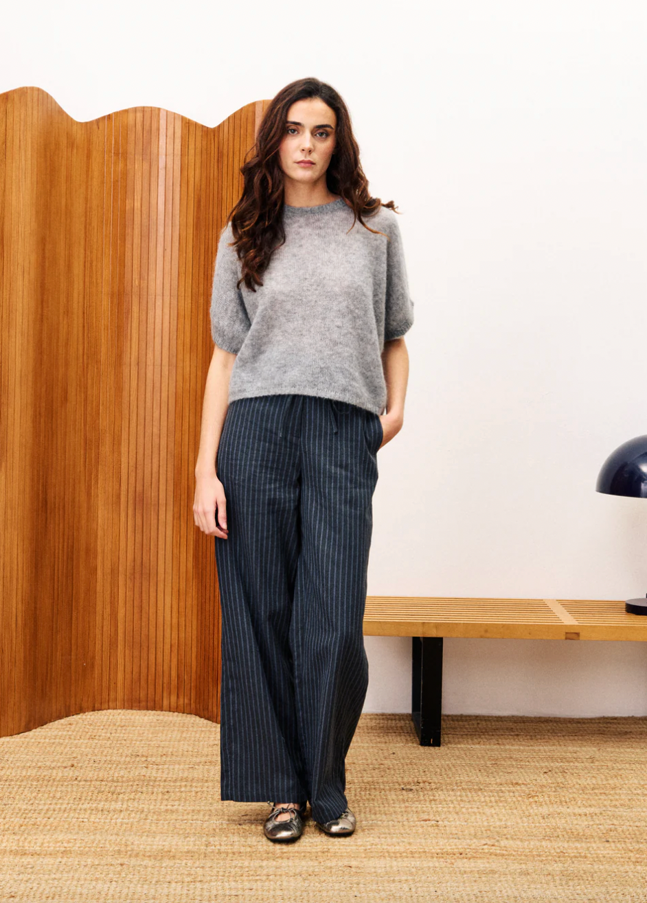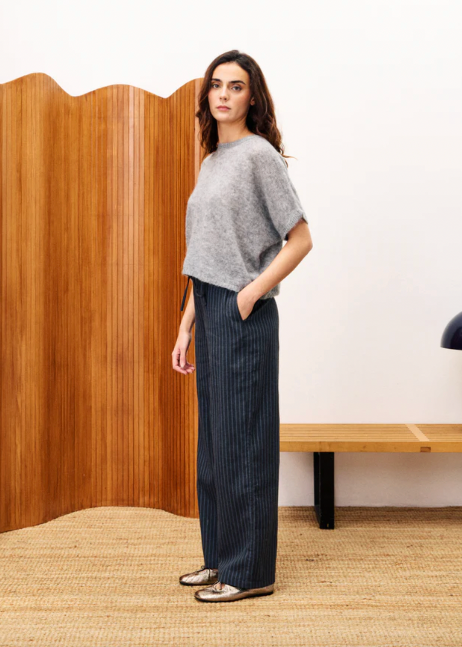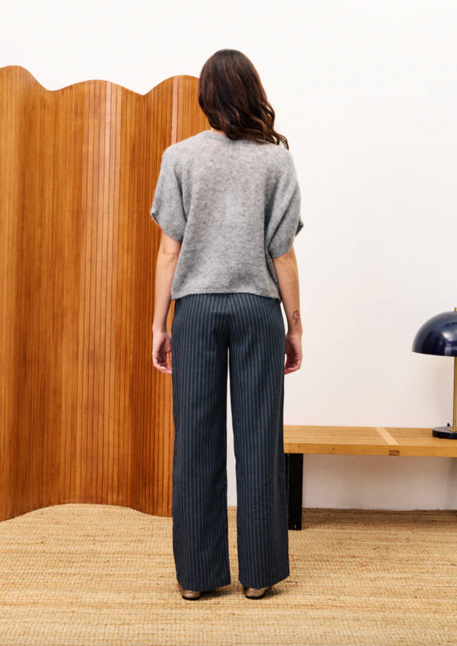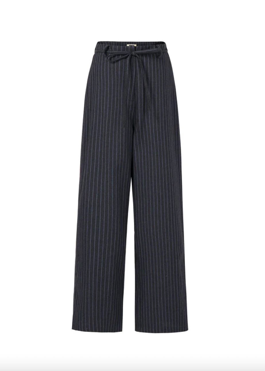 A striped suit pant that will become your closets new staple. We love the way these pants fit. Slightly wide and baggy with a cute tie belt in same fabric. Pair with your favorite tee for an effortlessly cool look.