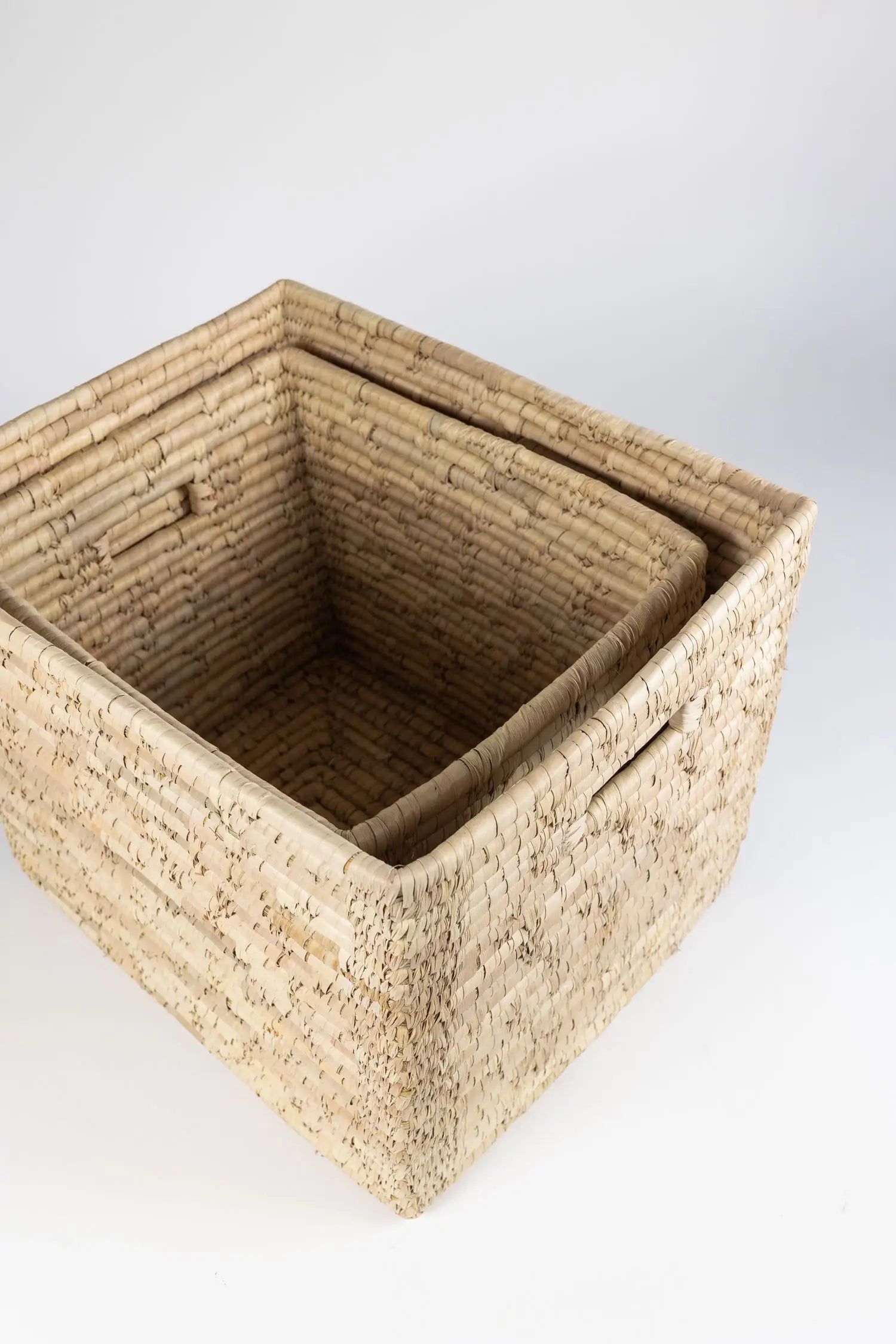 The Palm Leaf Storage Basket 13" is a minimalist, appealing and ethical way to corral clutter in any room. Linens in the closet, picture books on the floor, or stray cables in the office will all land out of sight with the help of this natural fiber basket.