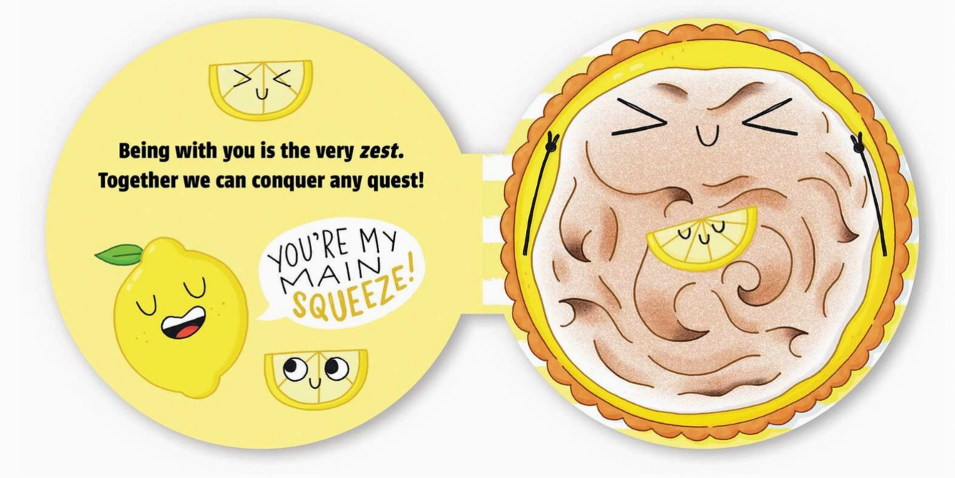 Express love and a-peach-iation through cute food-themed puns with this berry sweet pie-shaped board book perfect for the young and the young at heart.