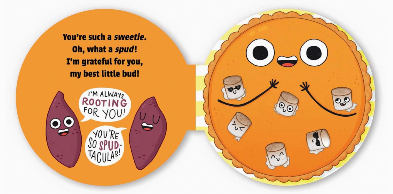 Kids will love this delicious board book, shaped like a pie, in which parents can share how grateful they are for them through their favorite flavors! This is the pie-fect board book to show your child that no matter how you slice it, they bake you happy and you could nut be more proud!