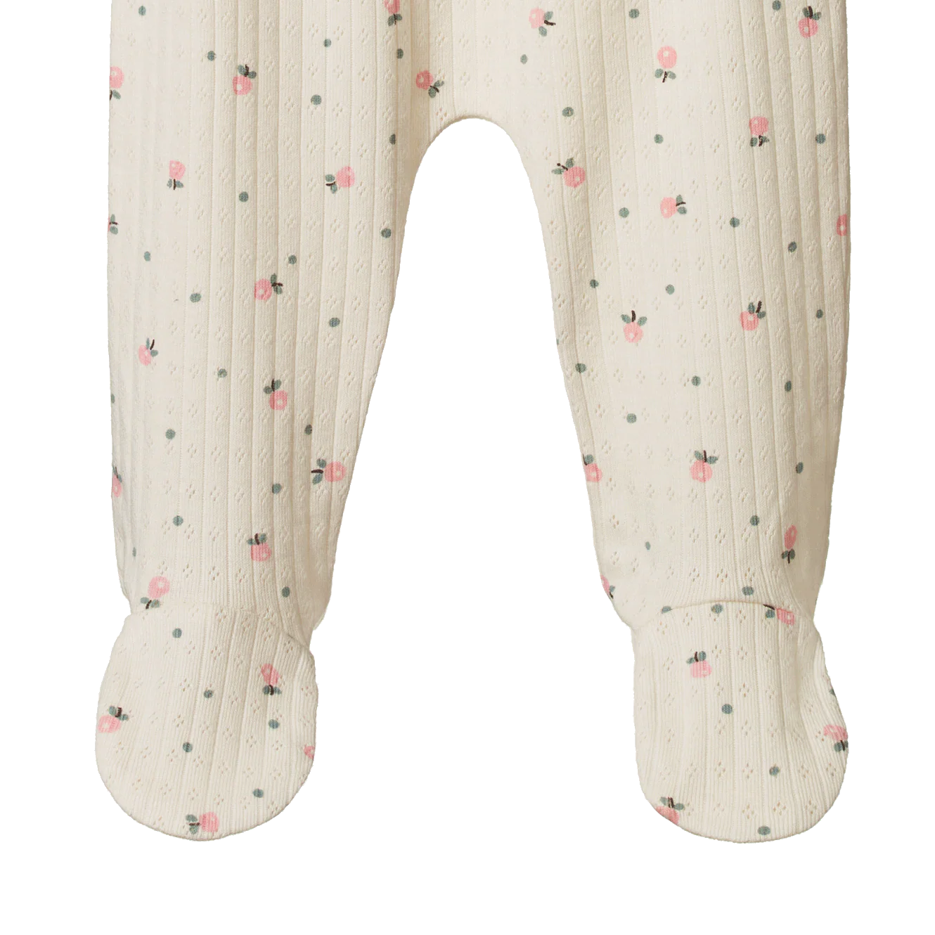 A popular style for babies, the footed rompers keep little feet warm and cosy. A comfortable design that is suitable for day and night wear and allows plenty of room for nappies. Features a soft organic cotton drawstring at the waist for an adjustable fit.